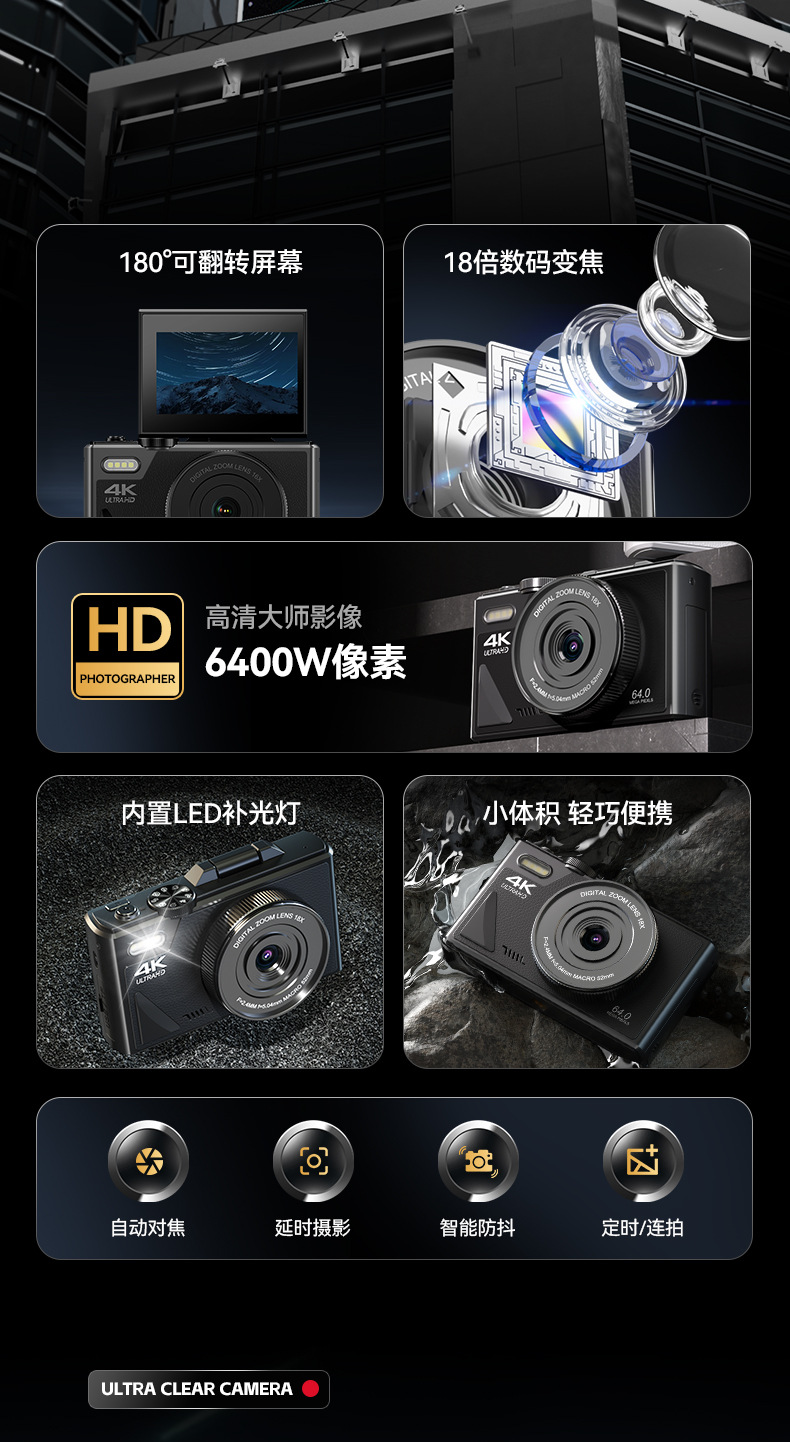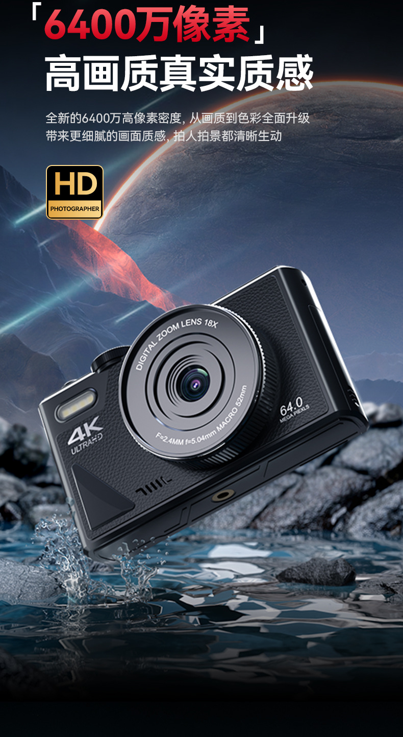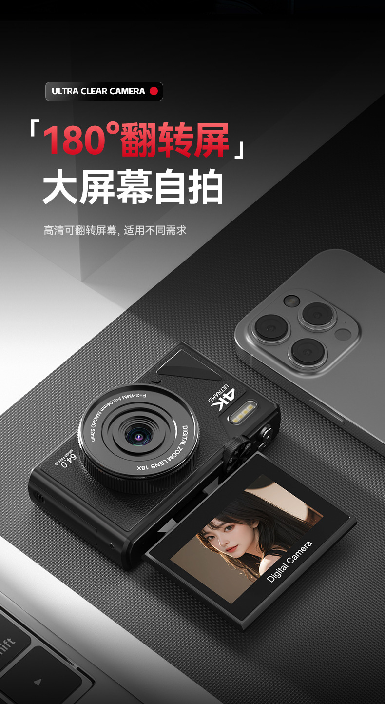 64 백만 픽셀 학생 디지털 카메라 HD 플립 스크린 와이파이 휴대 전화 레트로 뷰티 셀프 타이머 cd스토어 가기