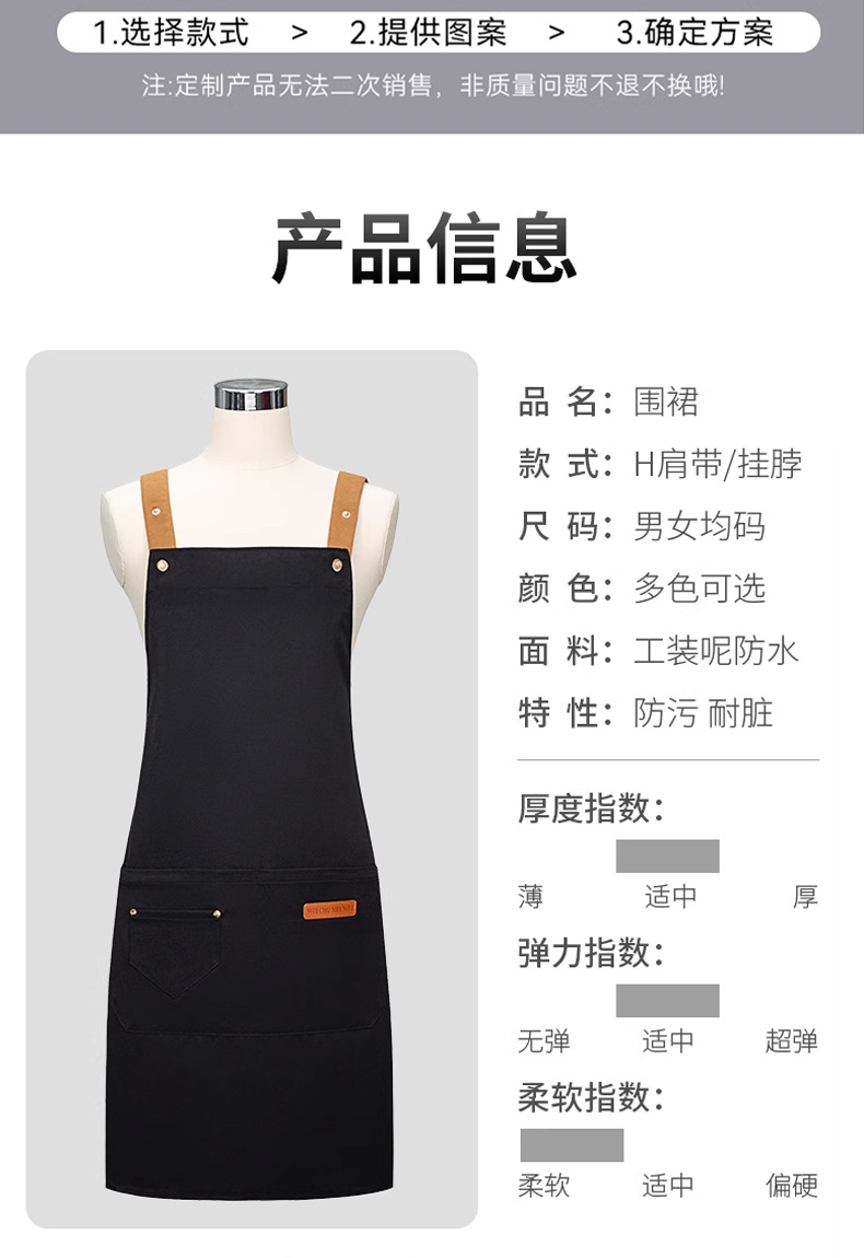 앞치마 맞춤 인쇄 로고 어깨 조정 방수 및 방유 공장 도매 커피 네일 아트 베이킹 레스토랑 먼지 방지스토어 가기