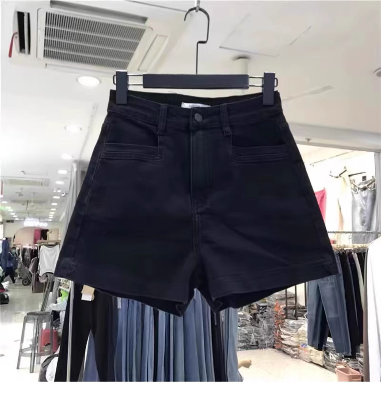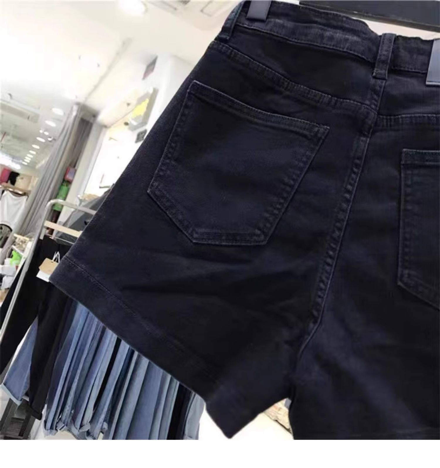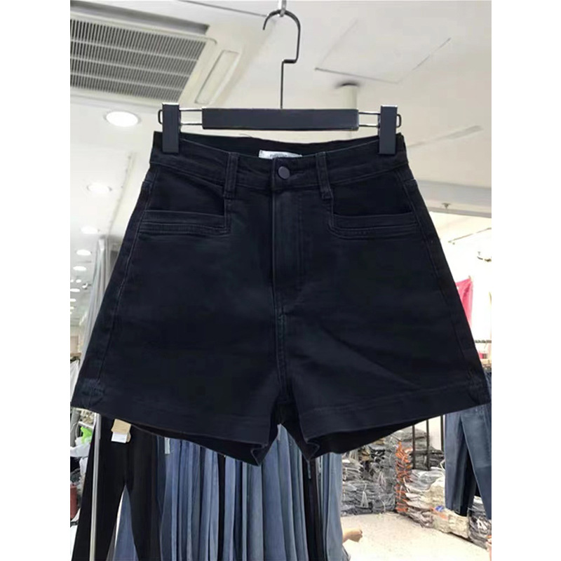 여성용 여름 블랙 하이웨이스트 데님 반바지, 플러스 사이즈, 뚱뚱한 mm, 배형 몸매, 신축성 있는 가랑이 커버, 슬리밍 A라인 팬츠, 핫팬츠스토어 가기
