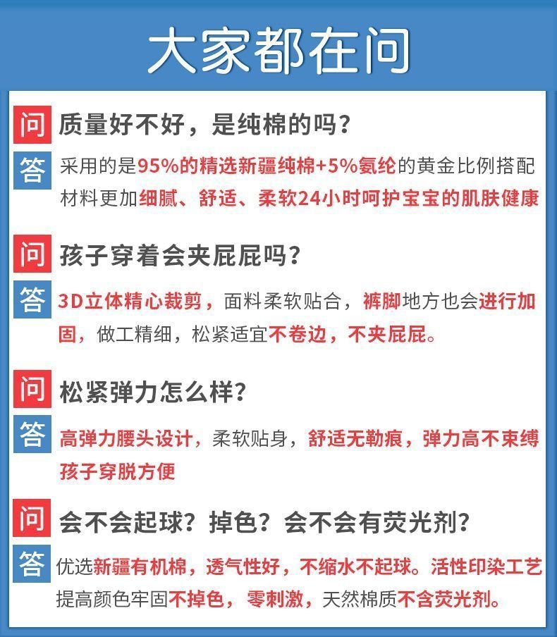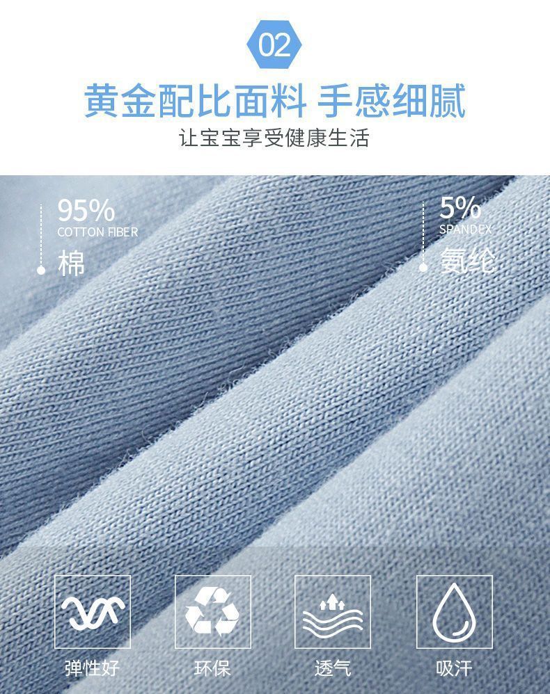 • 材质:面料含95%棉,棉质柔软亲肤、吸湿性好,能给孩子肌肤舒适体验,剩下5%可能是氨纶等弹性纤维,保证内裤有适当弹性,方便孩子活动 。