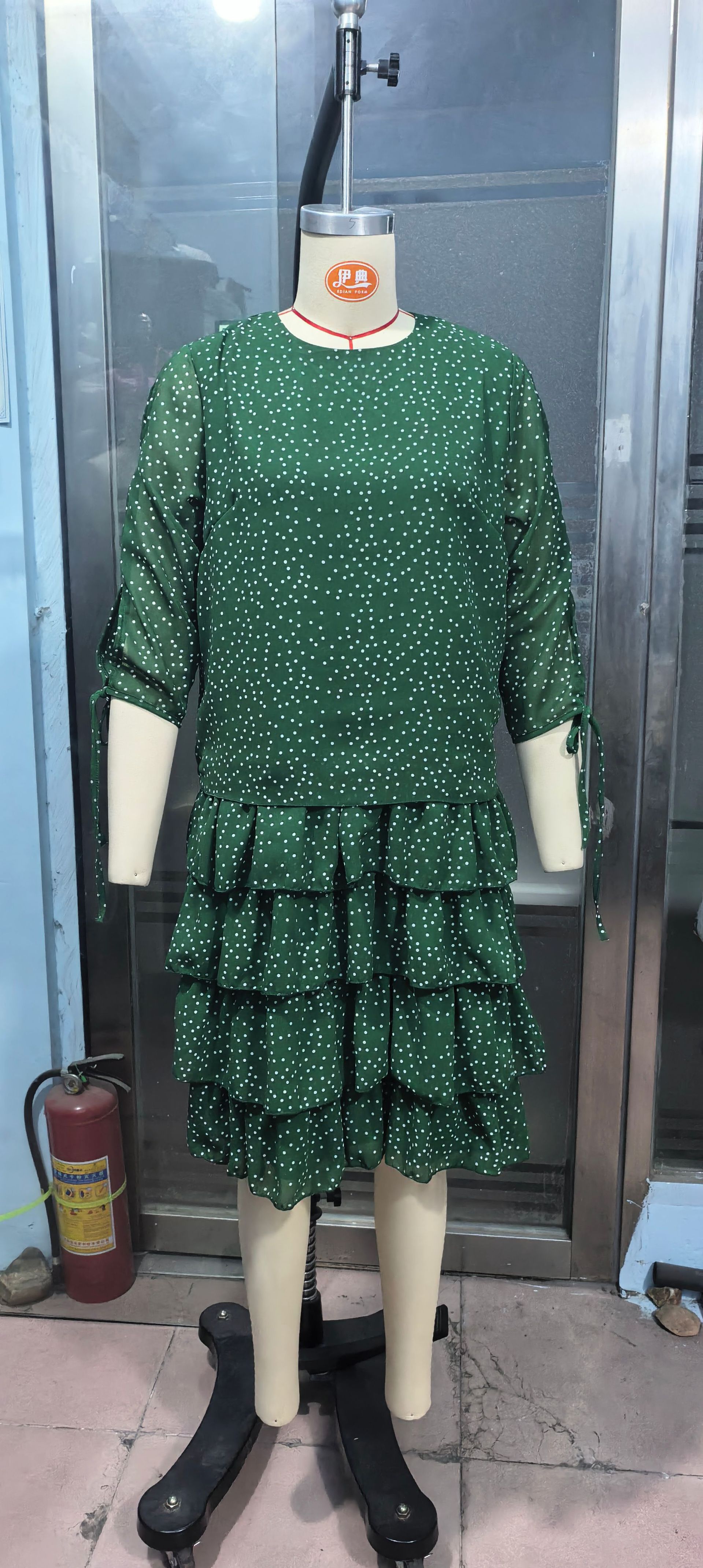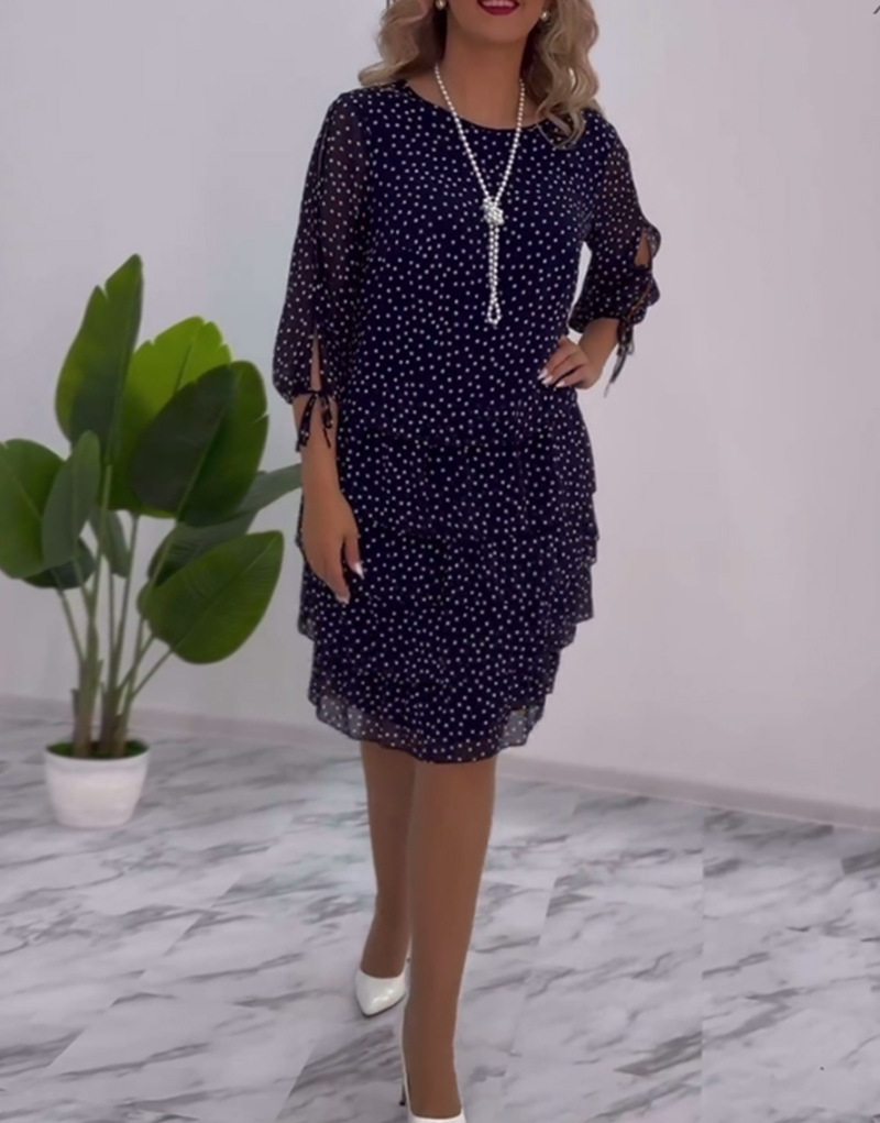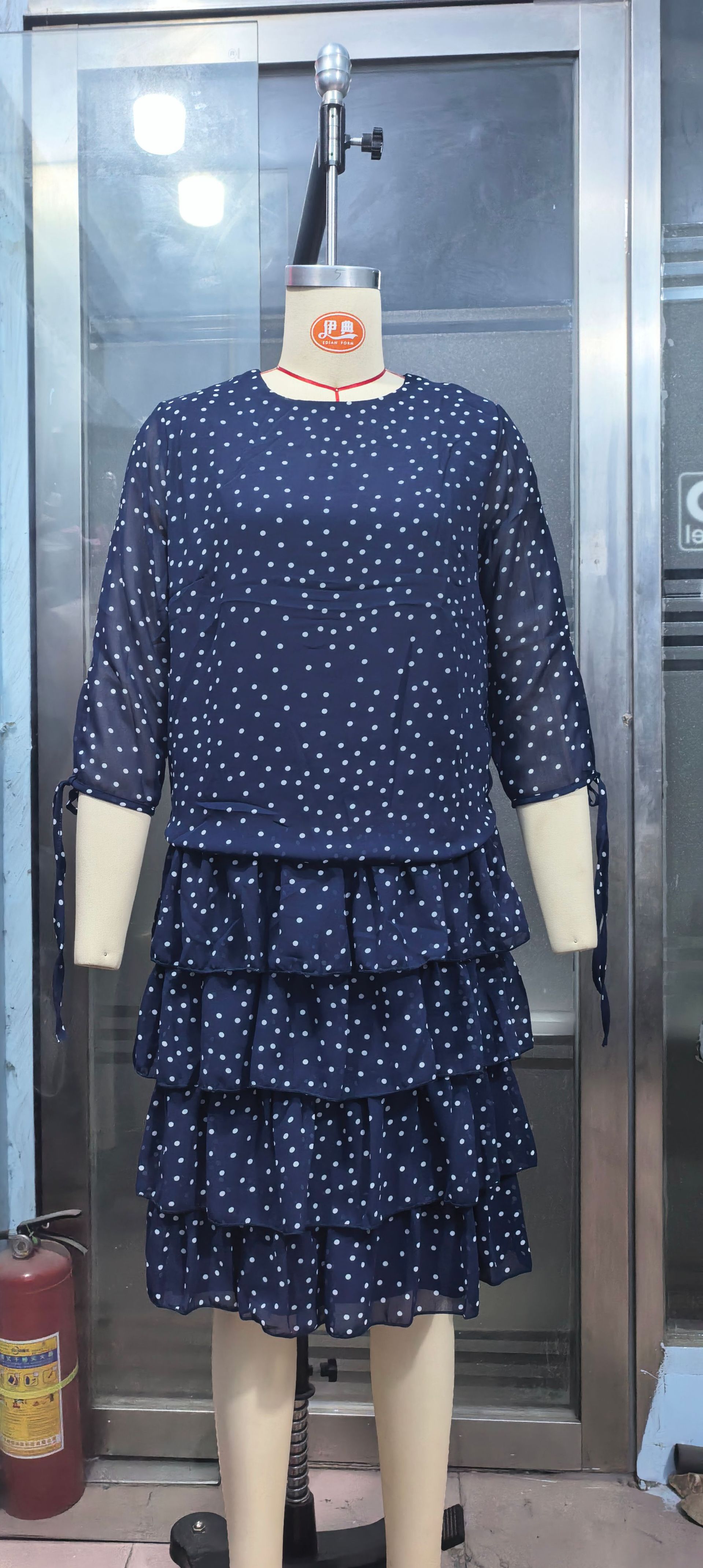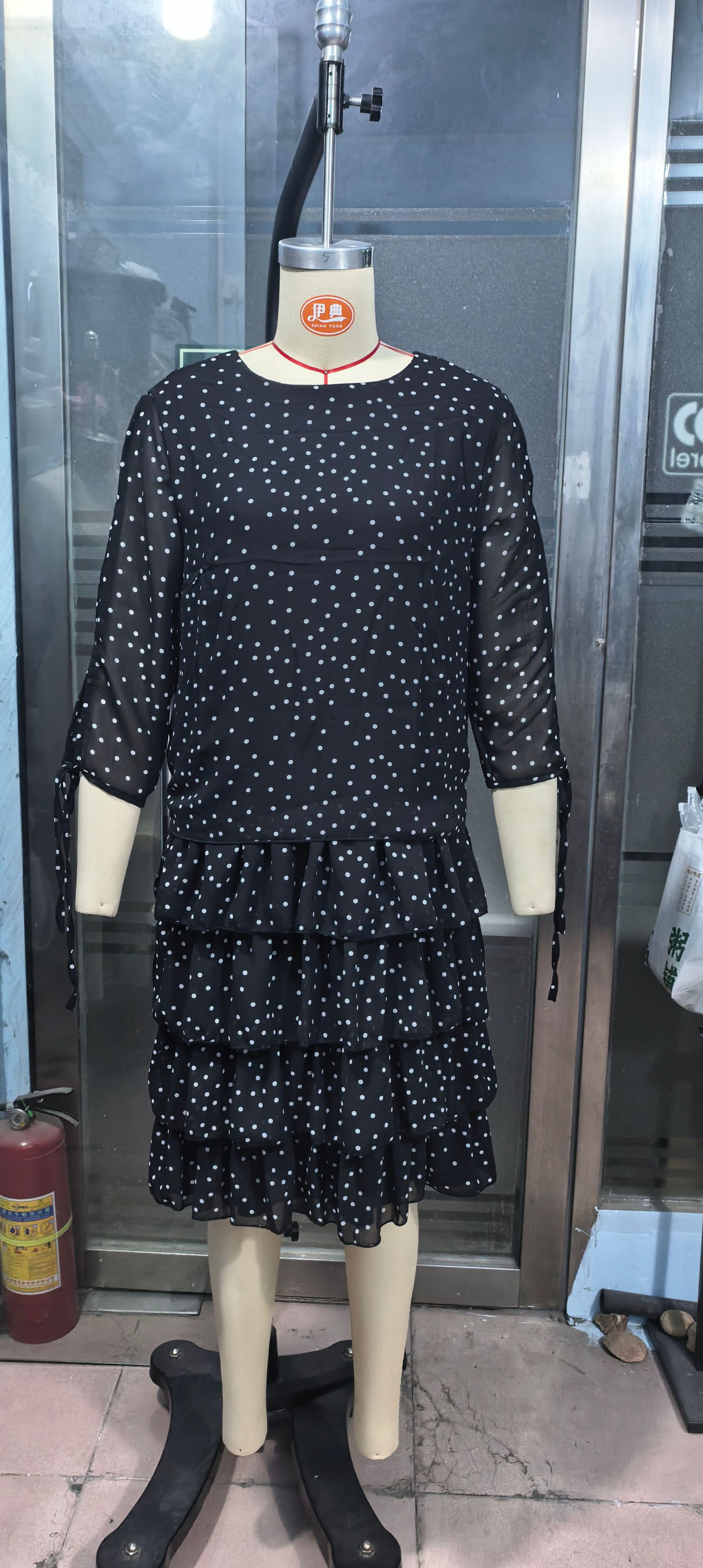 2024 가을 새로운 아마존 국경 간 유럽과 미국 스타일의 우아한 프린트 라운드 넥 폴카 도트 케이크 스커트 여성 의류스토어 가기