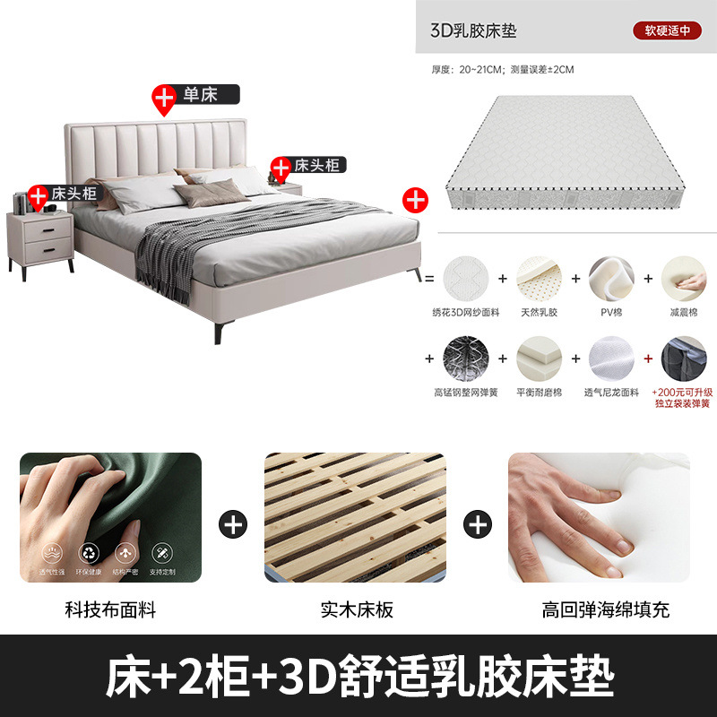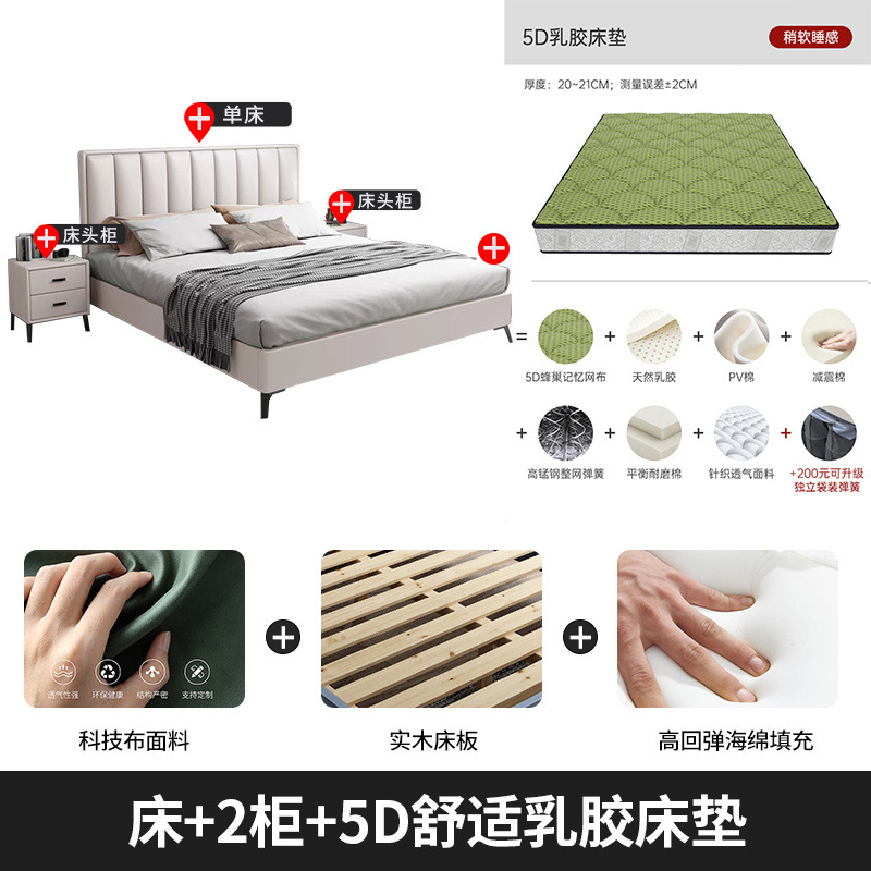 • 침대 + 캐비닛 2개 + 5D 편안한 라텍스 매트리스