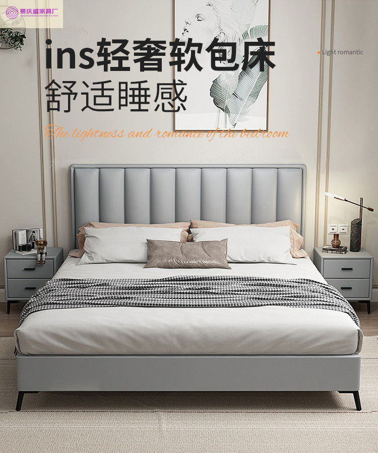 현대적인 미니멀리스트 패브릭 침대 더블 침대 1.5m 1.8m 소프트 크림 스타일 침대 침실 미니멀리스트 웨딩 침대 대형 침대스토어 가기