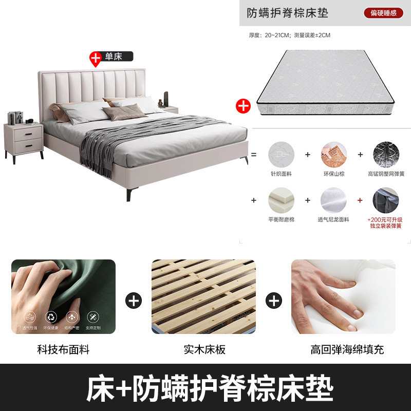 • 침대 + 수납장 2개 + 진드기 방지 척추 보호 브라운 매트리스