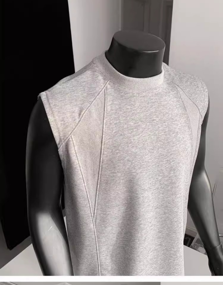 흰색 작은 커프 스레드 조끼 남자 여름 퓨어 코튼 피트니스 티셔츠 무거운 미국 스포츠 허리 코트 올드 헤드 라인