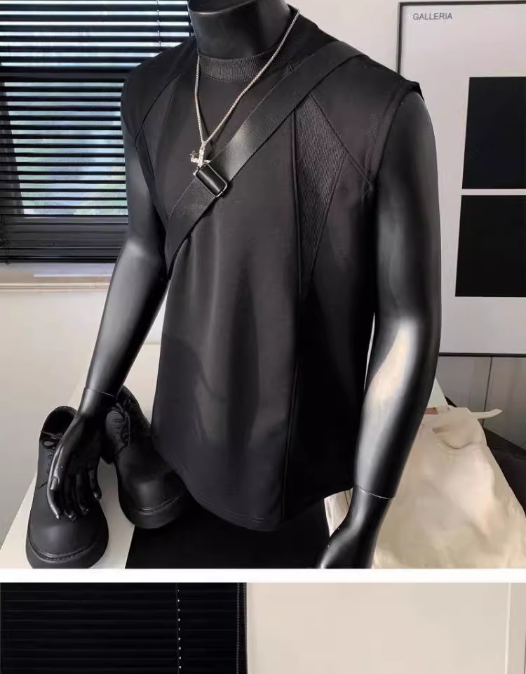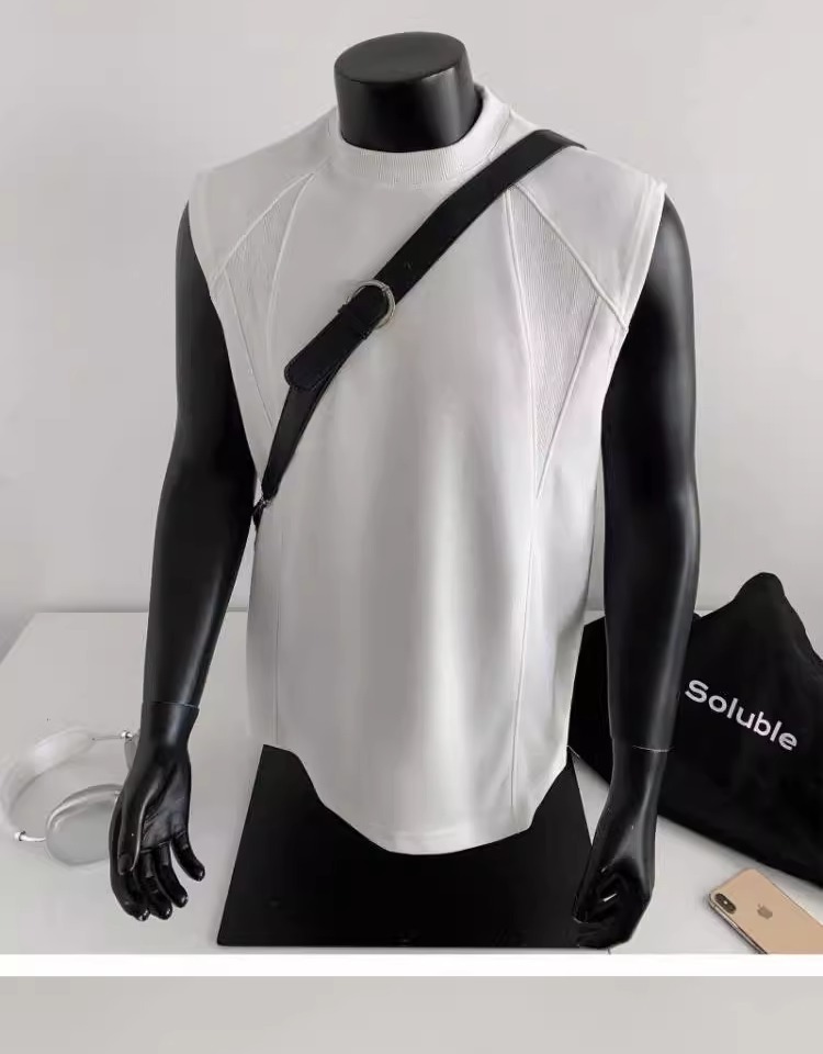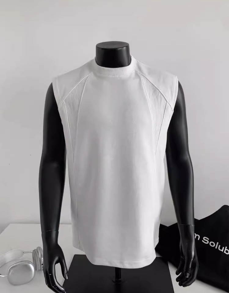 흰색 작은 커프 스레드 조끼 남자 여름 퓨어 코튼 피트니스 티셔츠 무거운 미국 스포츠 허리 코트 올드 헤드 라인스토어 가기