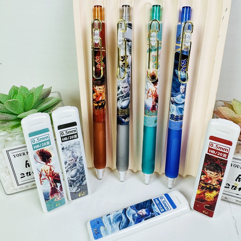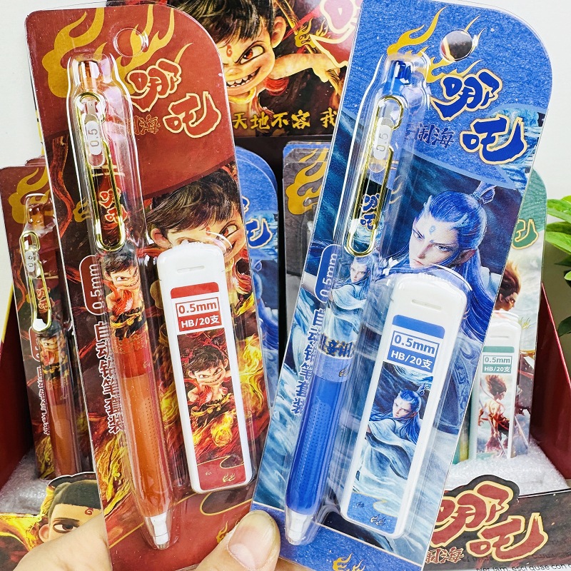 새로운 2822 Nezha 자동 연필 세트 만화 고가치 Ao Bing Ao Guang 연속 코어가 없는 샤프닝 연필