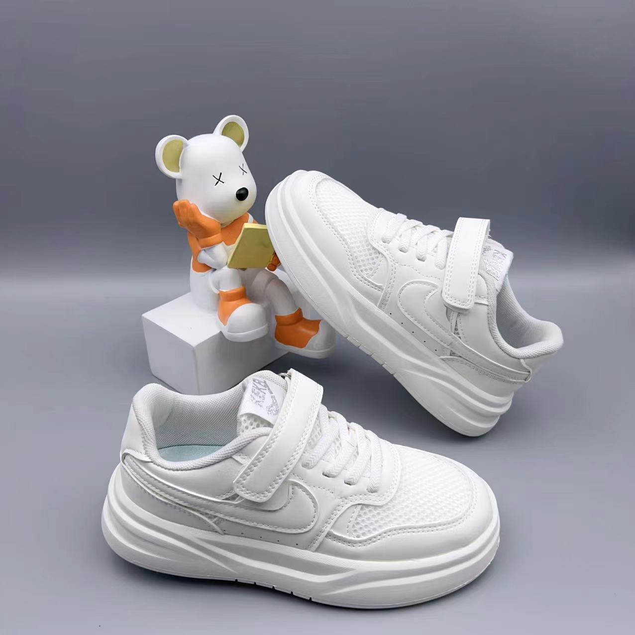 어린이 명절 특별한 흰색 신발 2025 여름 새로운 스타일의 투명 메쉬 소년 소녀용 가벼운 밑창 운동화, 중대형 아동 운동화