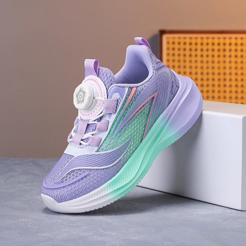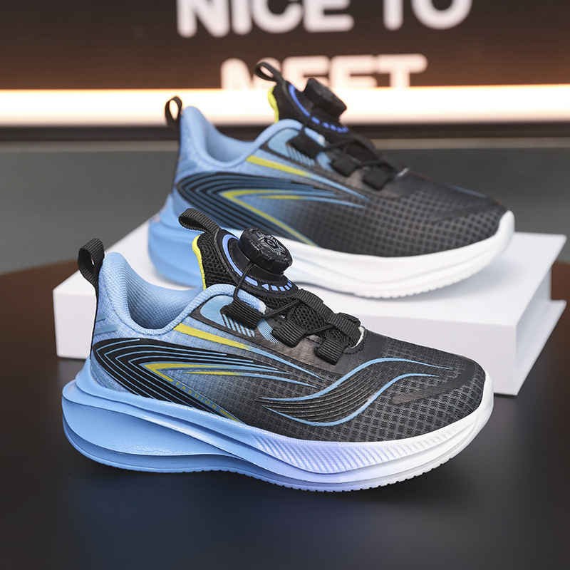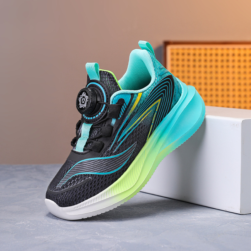 소년 신발 2025 여름 새로운 어린이 스포츠 신발 큰 어린이 회전 버클 소녀 메쉬 스텝 트레이너 싱글