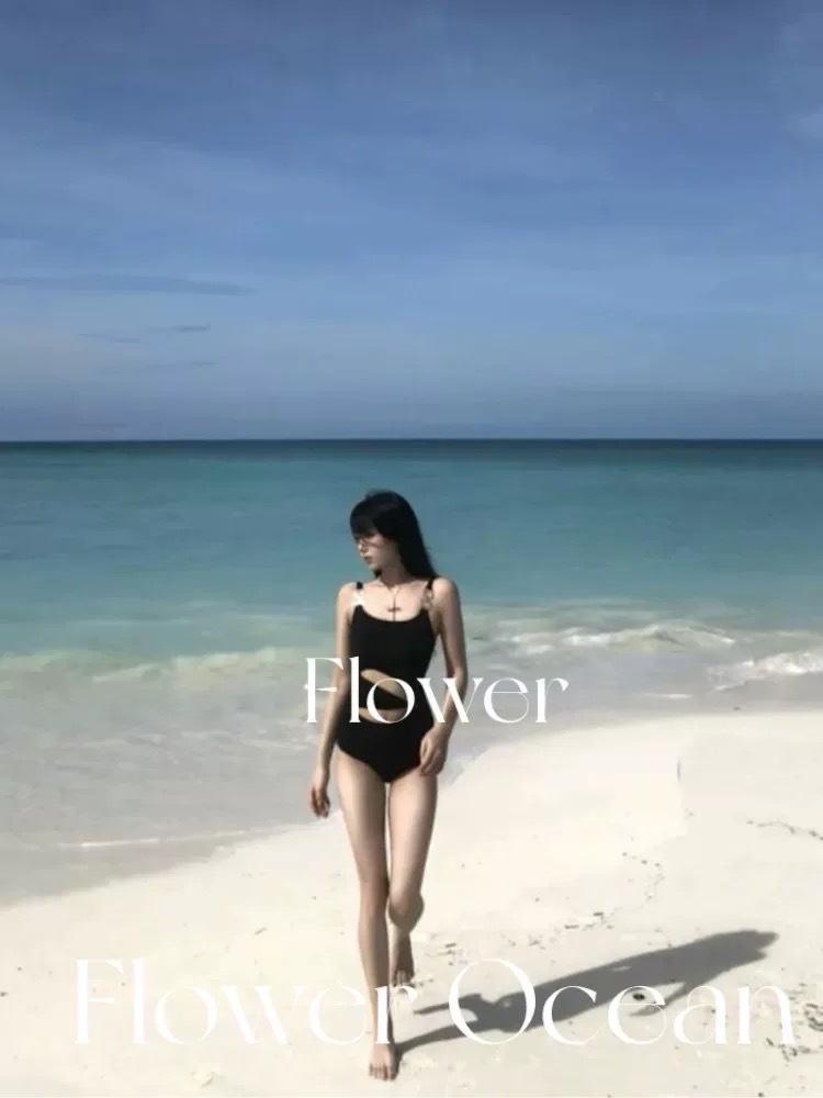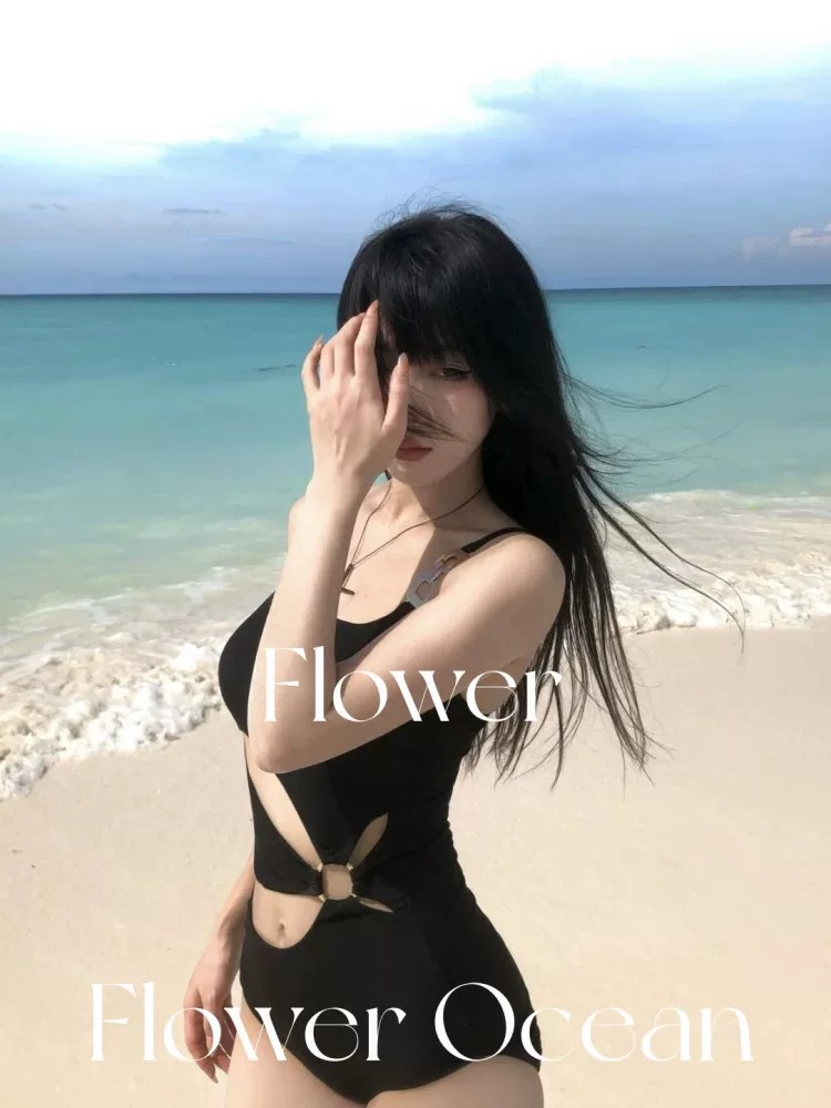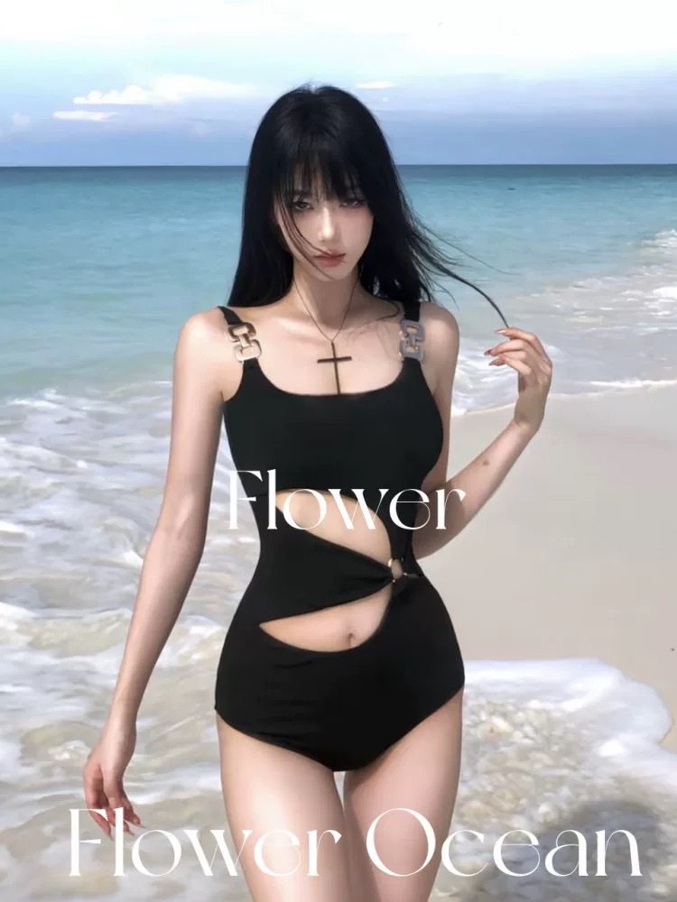 [Free Bird] 뉴 블랙 하이엔드 인스 스타일 원피스 슬리밍 배 커버 온천 리조트 수영복스토어 가기
