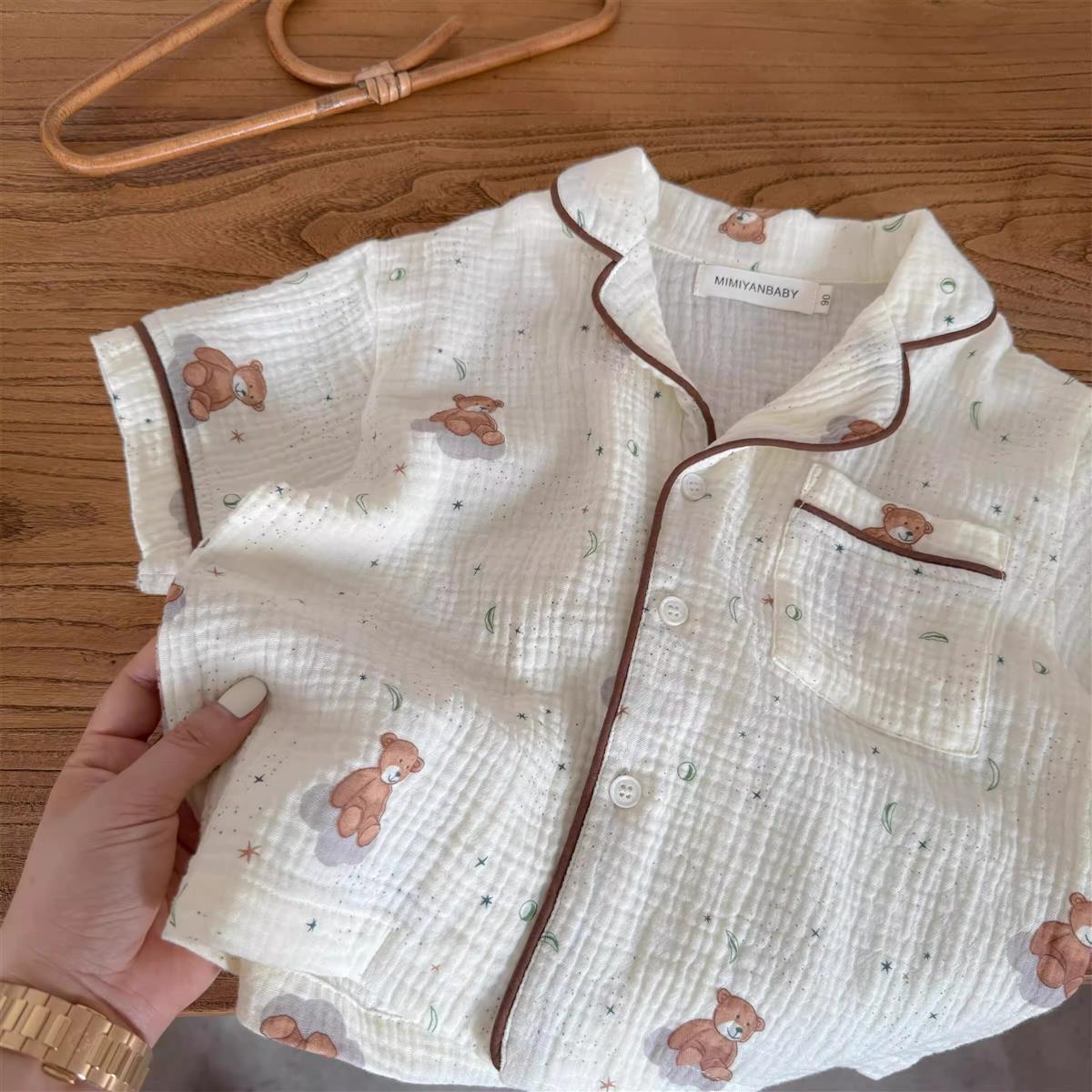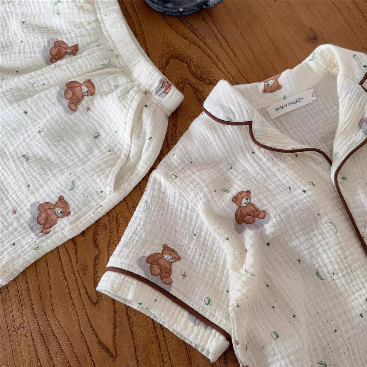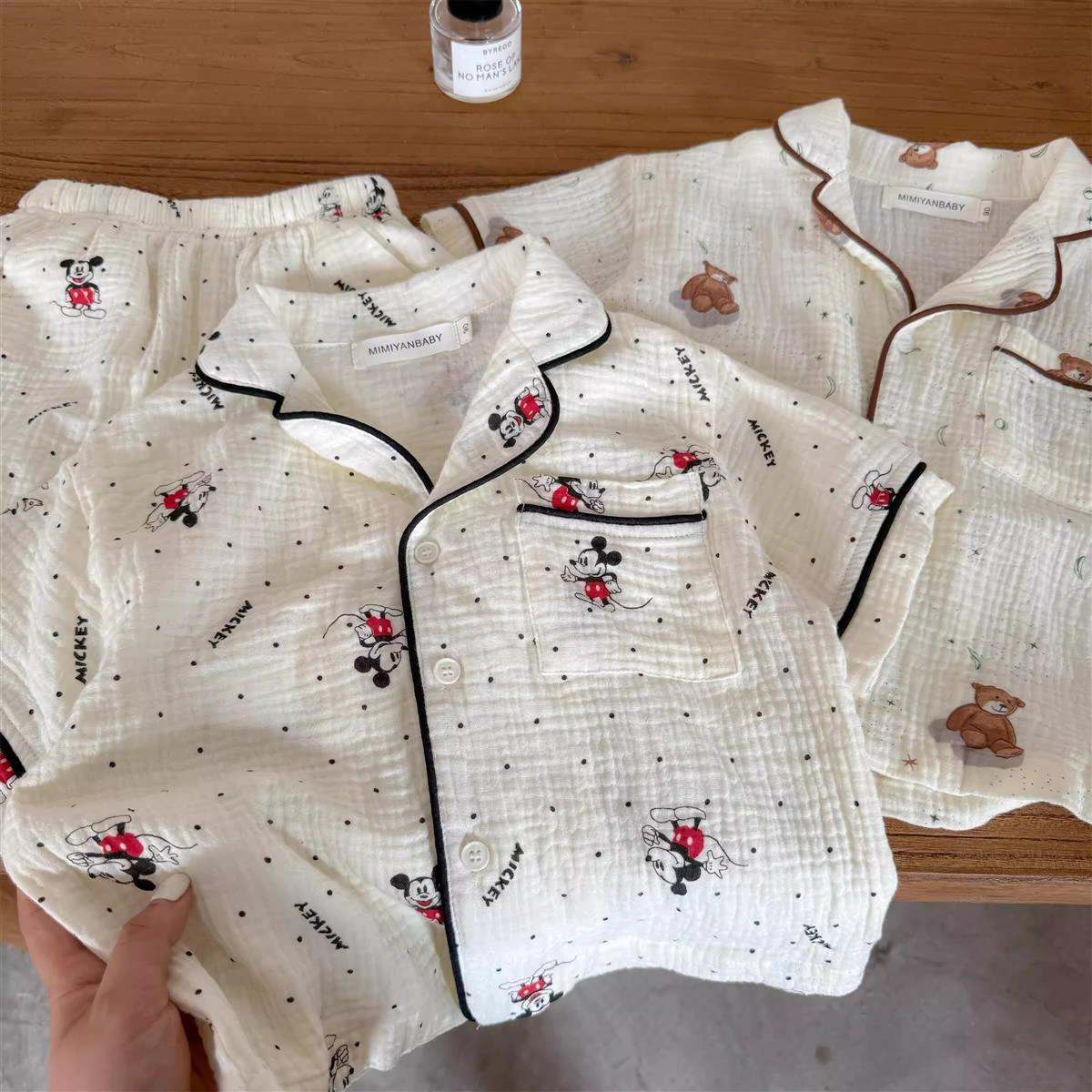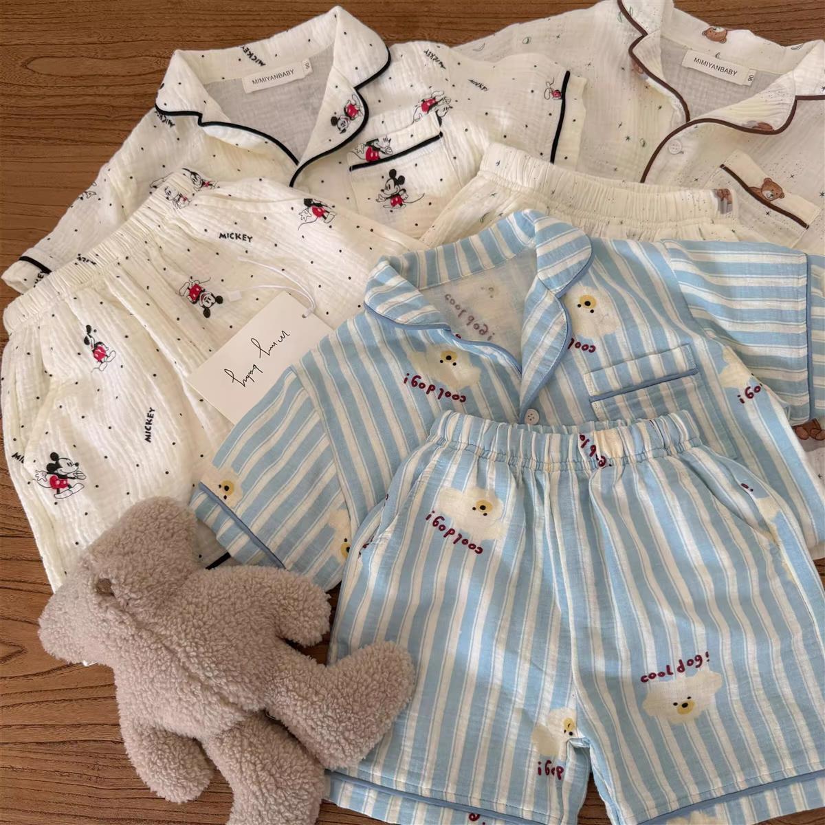 어린이 잠옷 세트 반팔 여름 소년 순수 코튼 홈 의류 통기성 아기 만화 셔츠 투피스 얇은 세트스토어 가기
