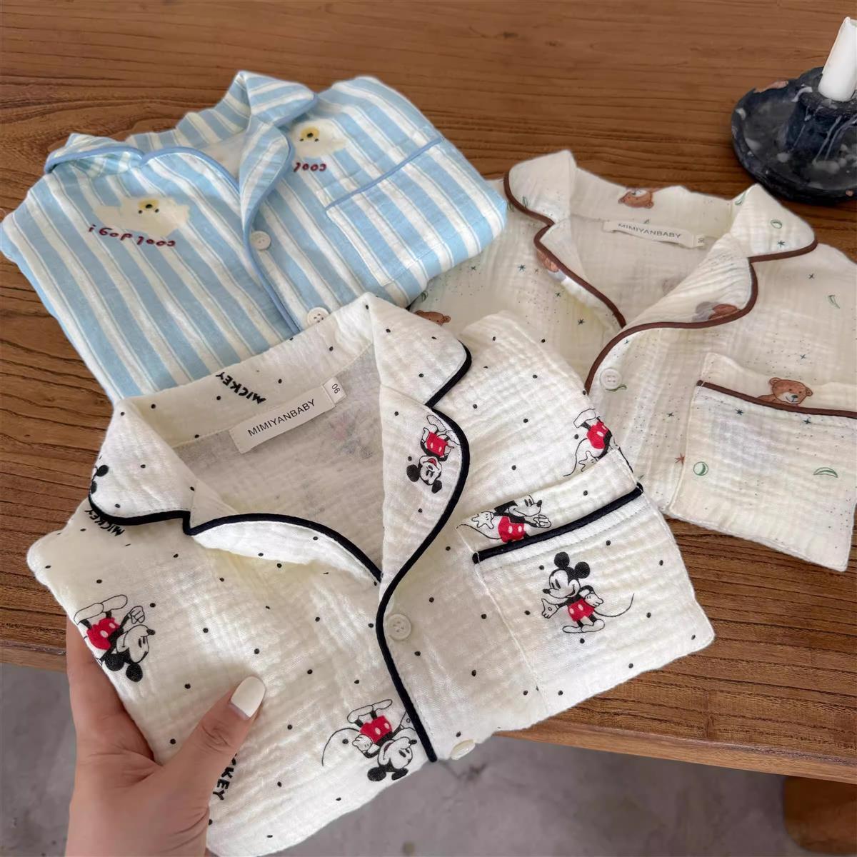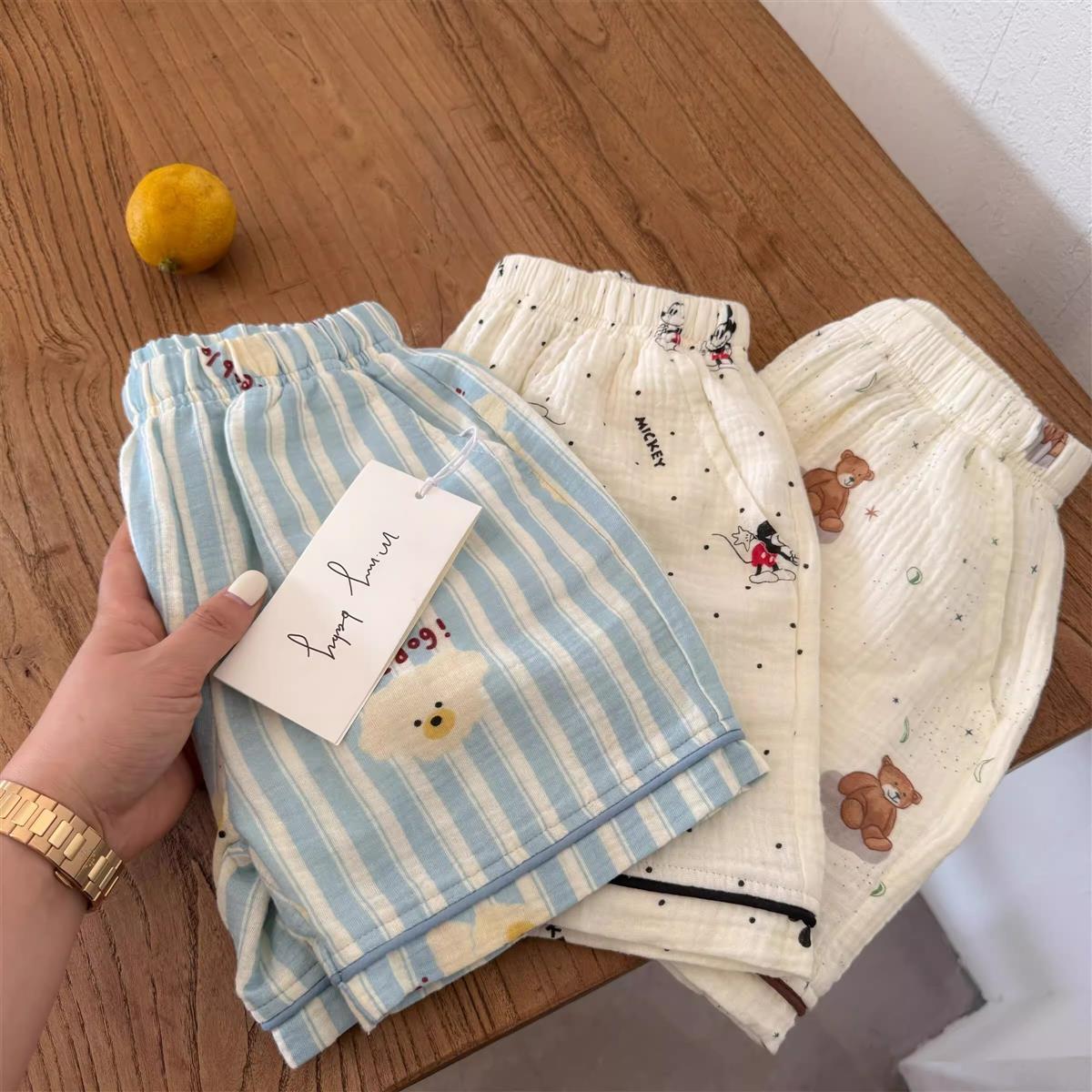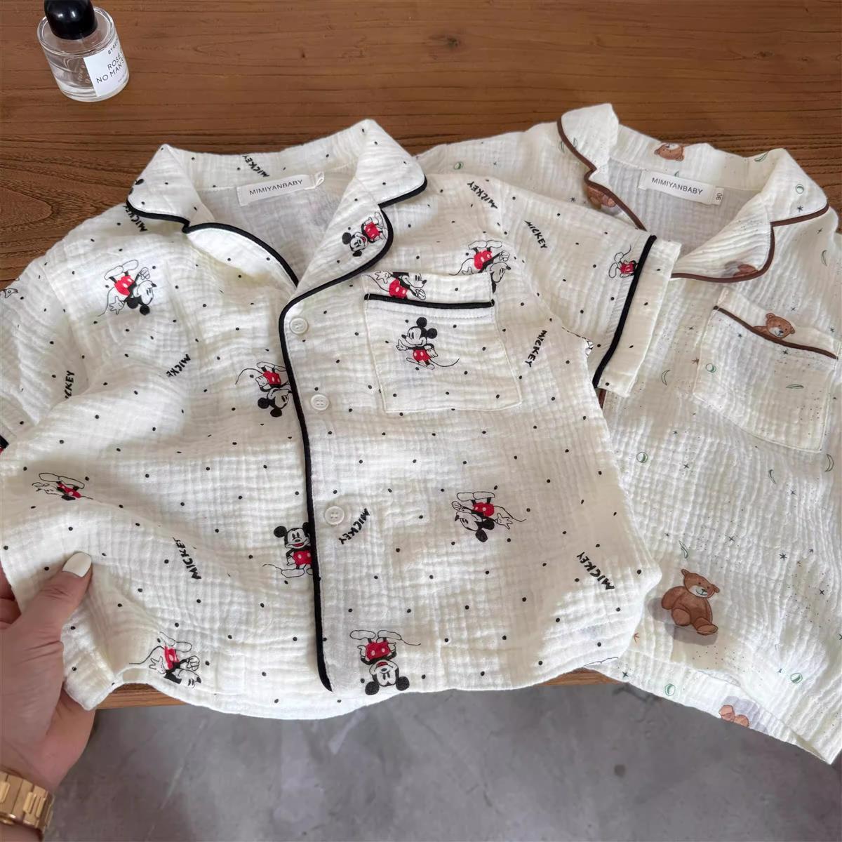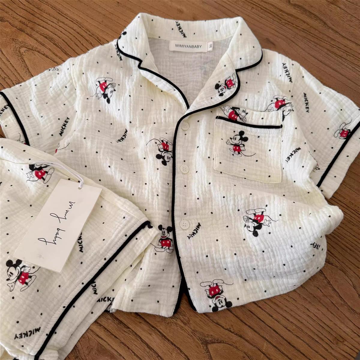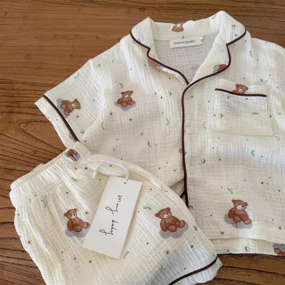 어린이 잠옷 세트 반팔 여름 소년 순수 코튼 홈 의류 통기성 아기 만화 셔츠 투피스 얇은 세트스토어 가기
