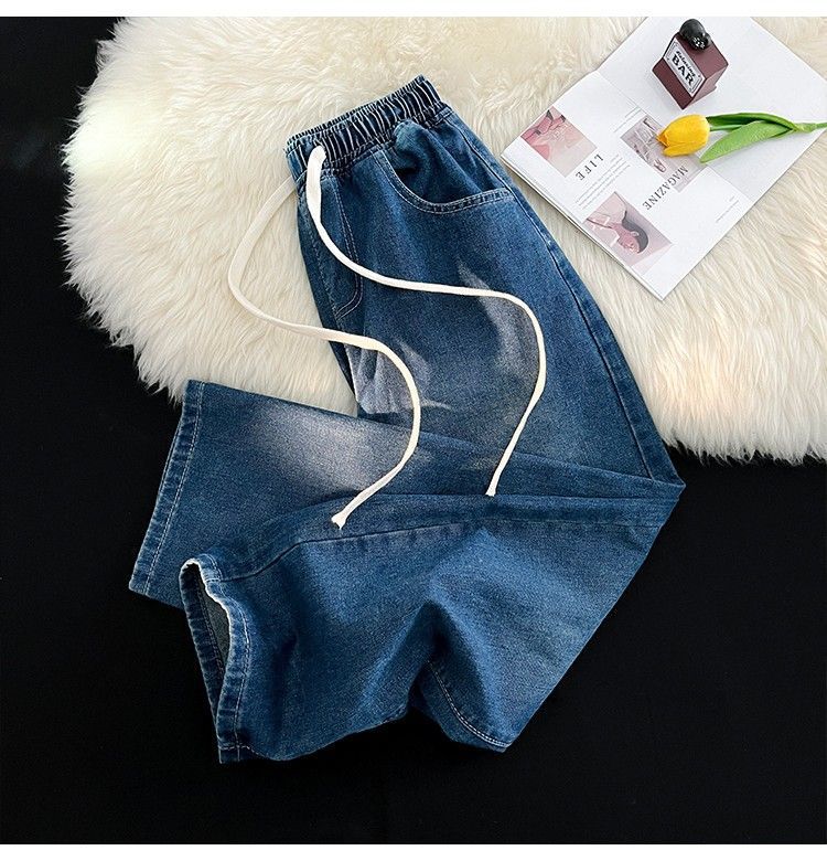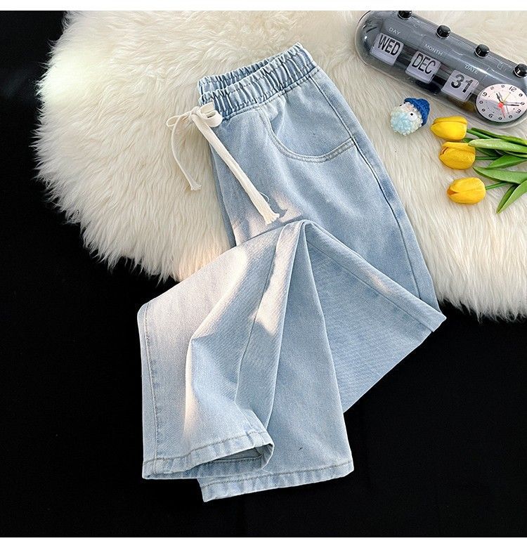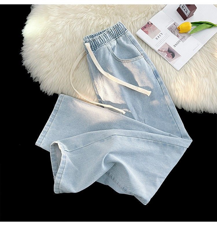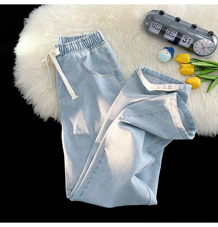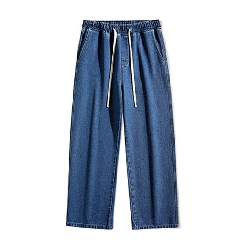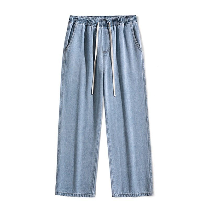 라이트 컬러 청바지 남성용 신축성 있는 허리 캐주얼 트렌디 브랜드 여름 남성용 드로스트링 스트레이트 루즈 스트레이트 남성용 긴 바지스토어 가기