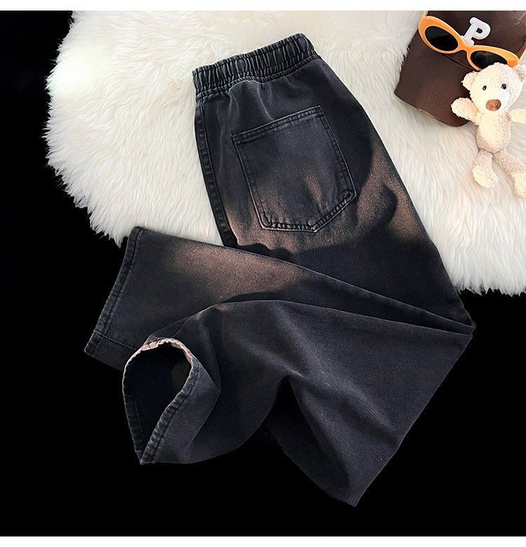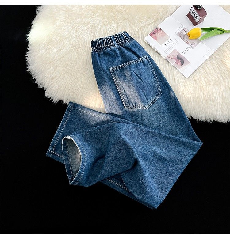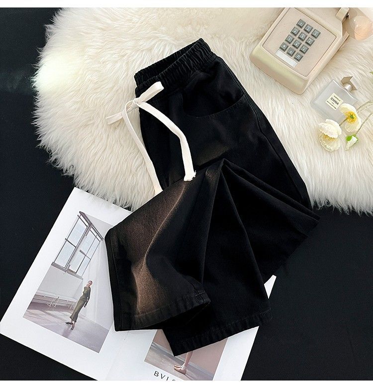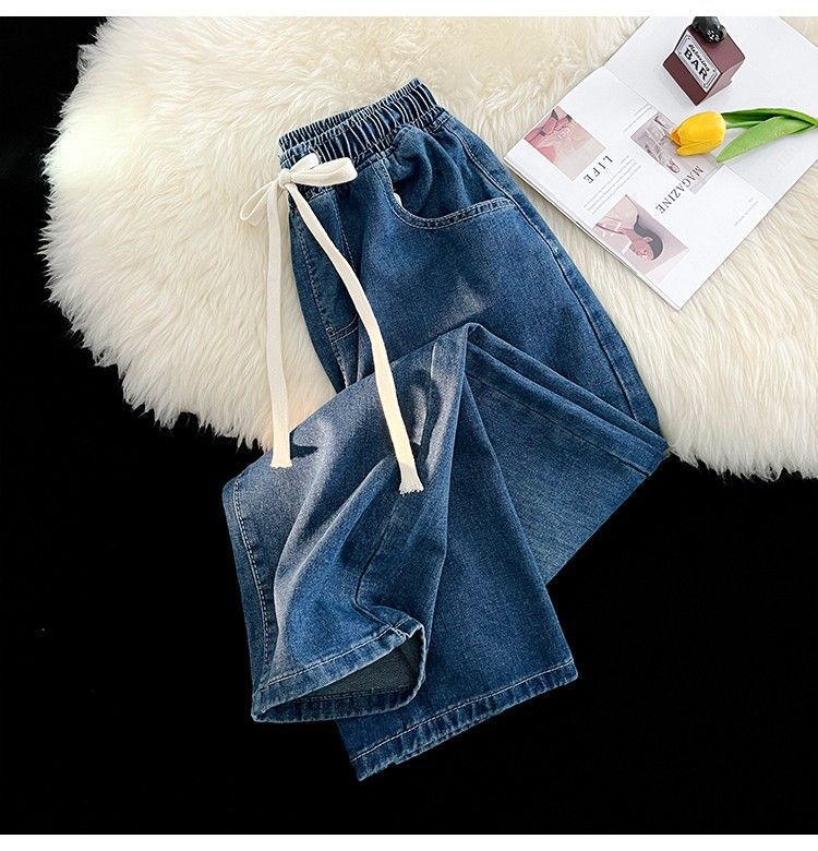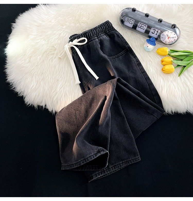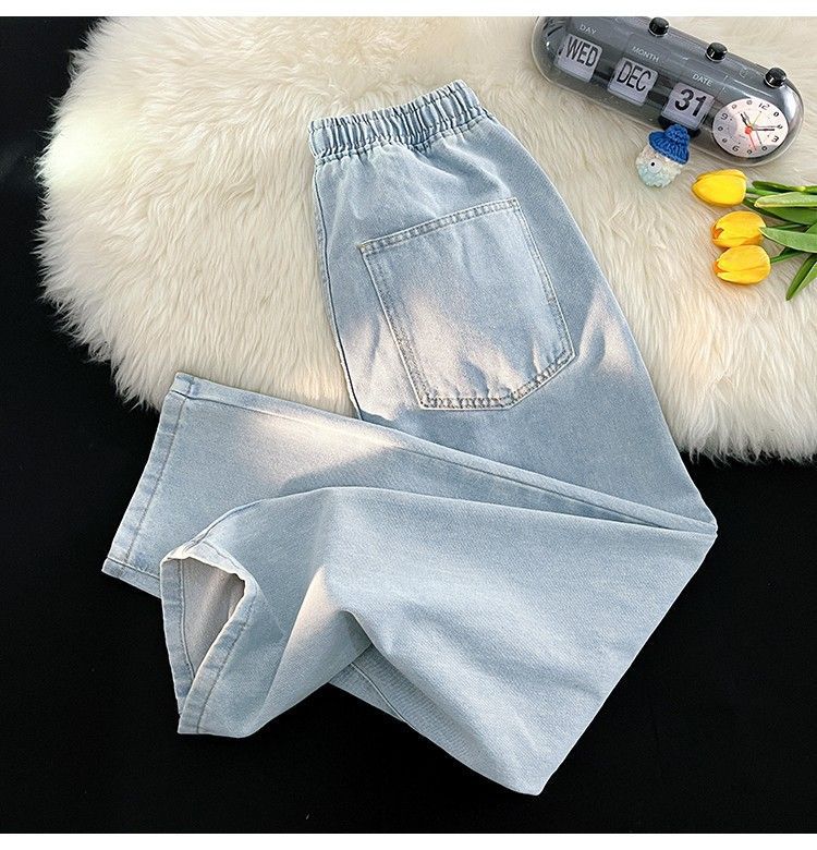 라이트 컬러 청바지 남성용 신축성 있는 허리 캐주얼 트렌디 브랜드 여름 남성용 드로스트링 스트레이트 루즈 스트레이트 남성용 긴 바지스토어 가기