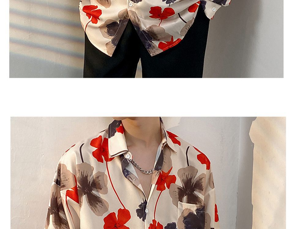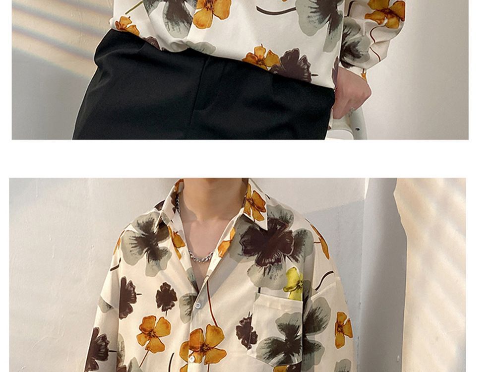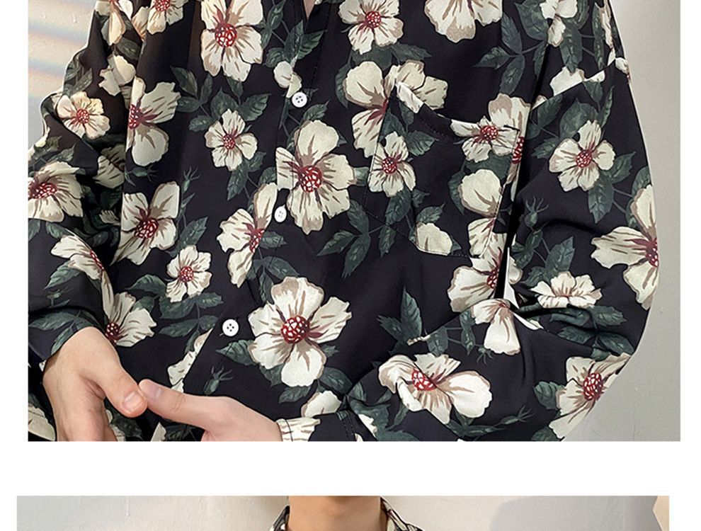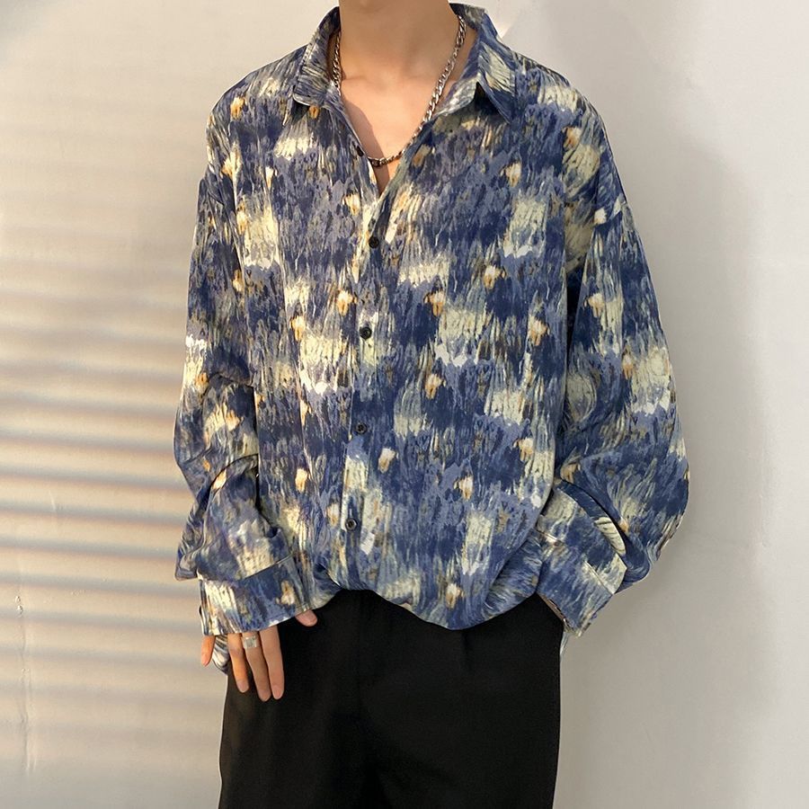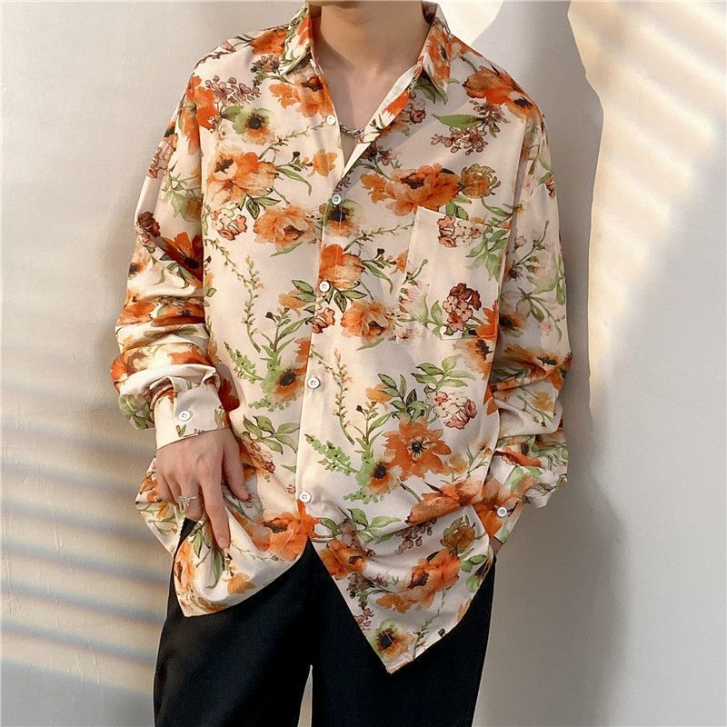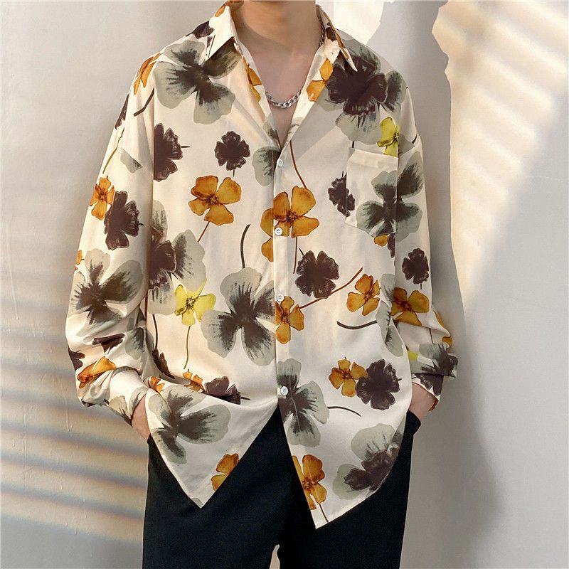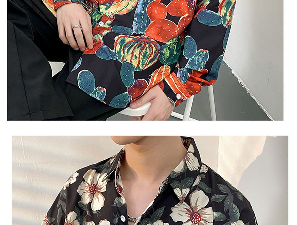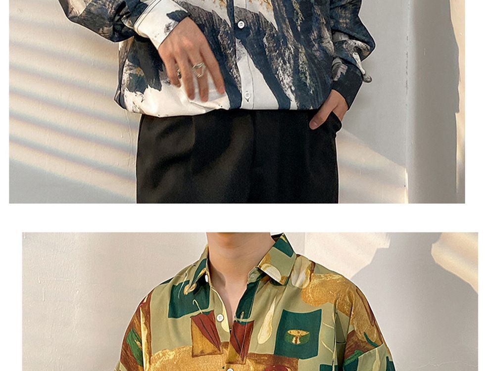봄과 가을 남성용 매우 멋진 셔츠, 남성용 재미있는 프린트 셔츠, 긴팔 홍콩 스타일 루즈 패션 캐주얼 셔츠 및 재킷스토어 가기