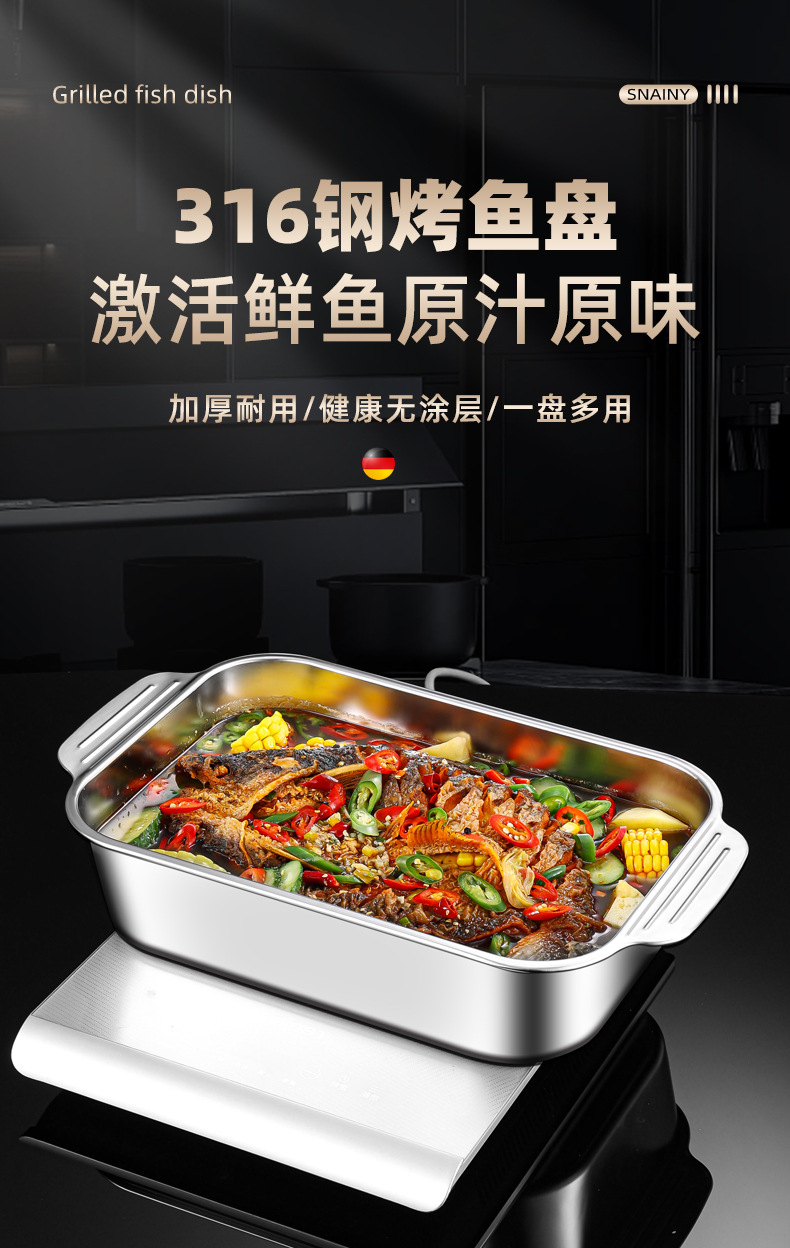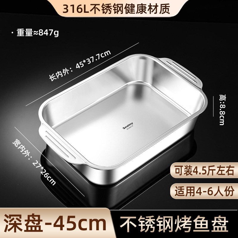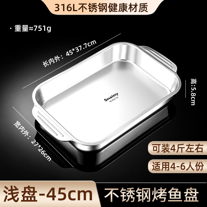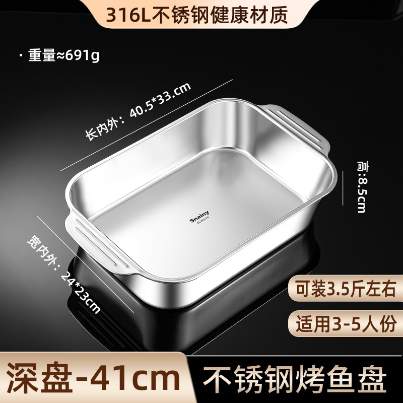 316 스테인레스 스틸 베이킹 팬 생선 접시 저녁 식사 접시 가정용 깊은 접시 트레이 사각형 접시 인덕션 밥솥 오픈 화염 접시 도매스토어 가기