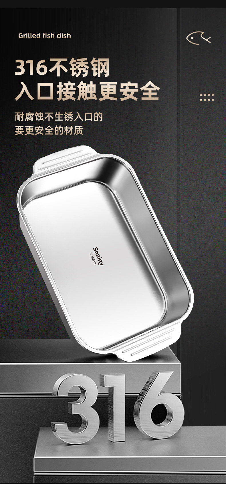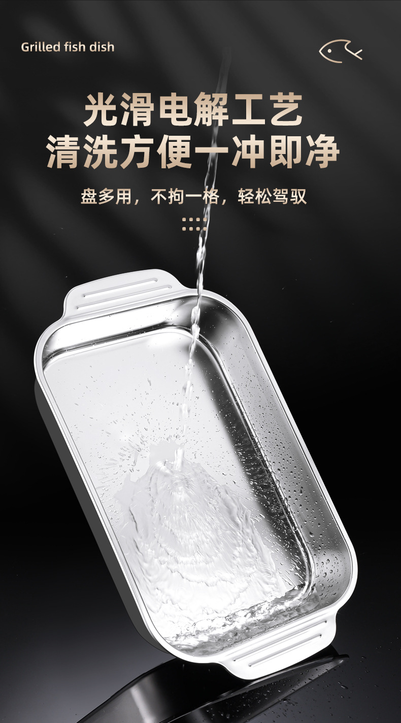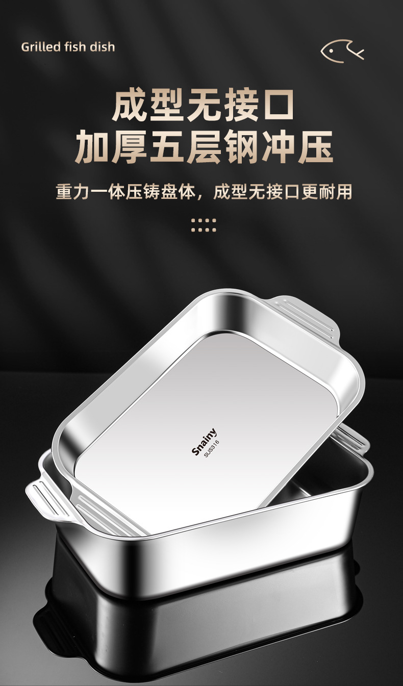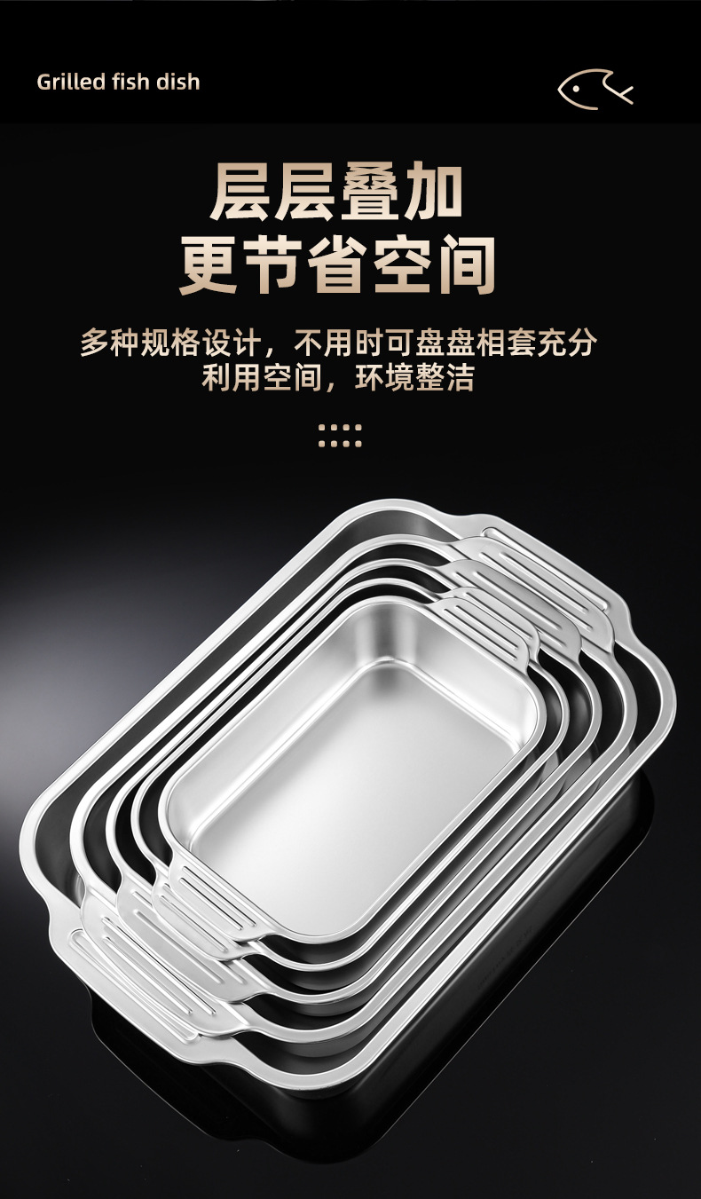316 스테인레스 스틸 베이킹 팬 생선 접시 저녁 식사 접시 가정용 깊은 접시 트레이 사각형 접시 인덕션 밥솥 오픈 화염 접시 도매