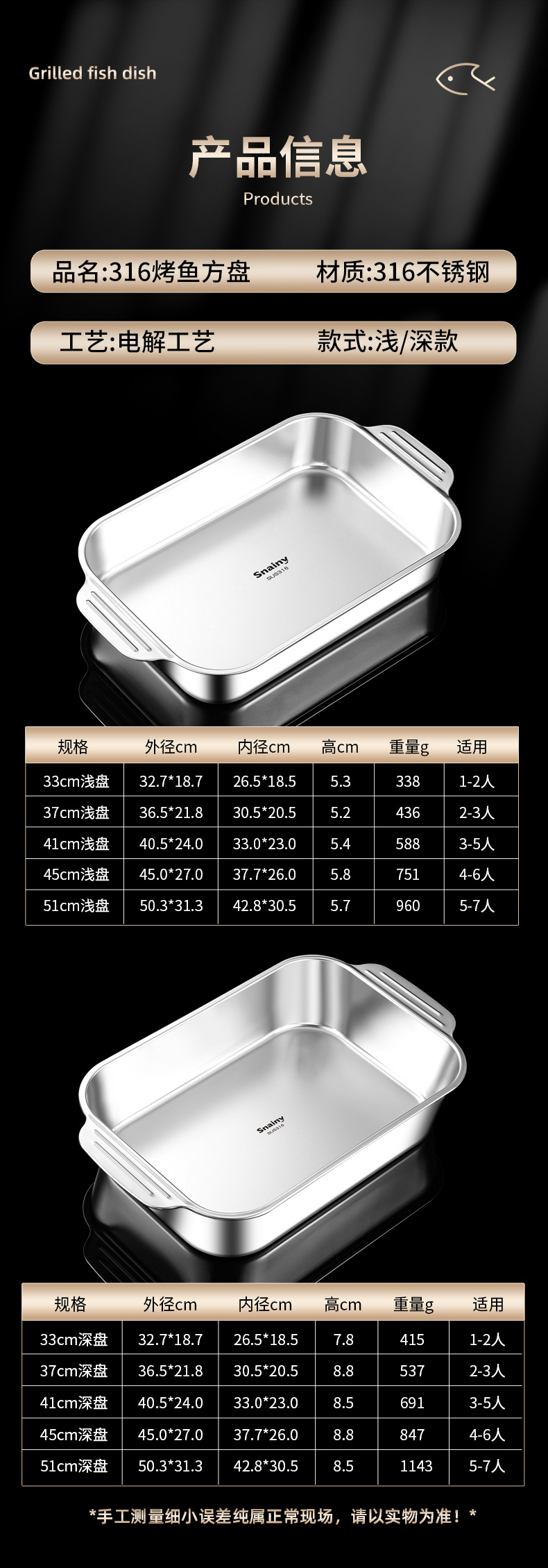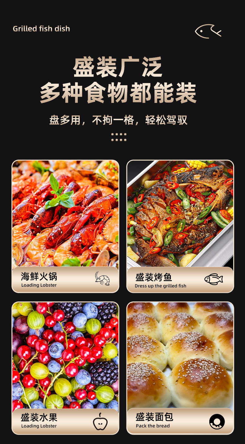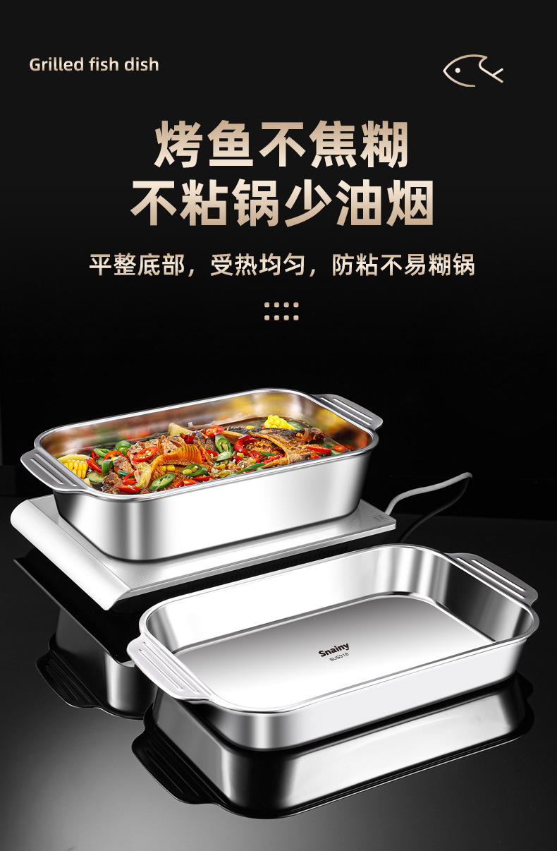 316 스테인레스 스틸 베이킹 팬 생선 접시 저녁 식사 접시 가정용 깊은 접시 트레이 사각형 접시 인덕션 밥솥 오픈 화염 접시 도매
