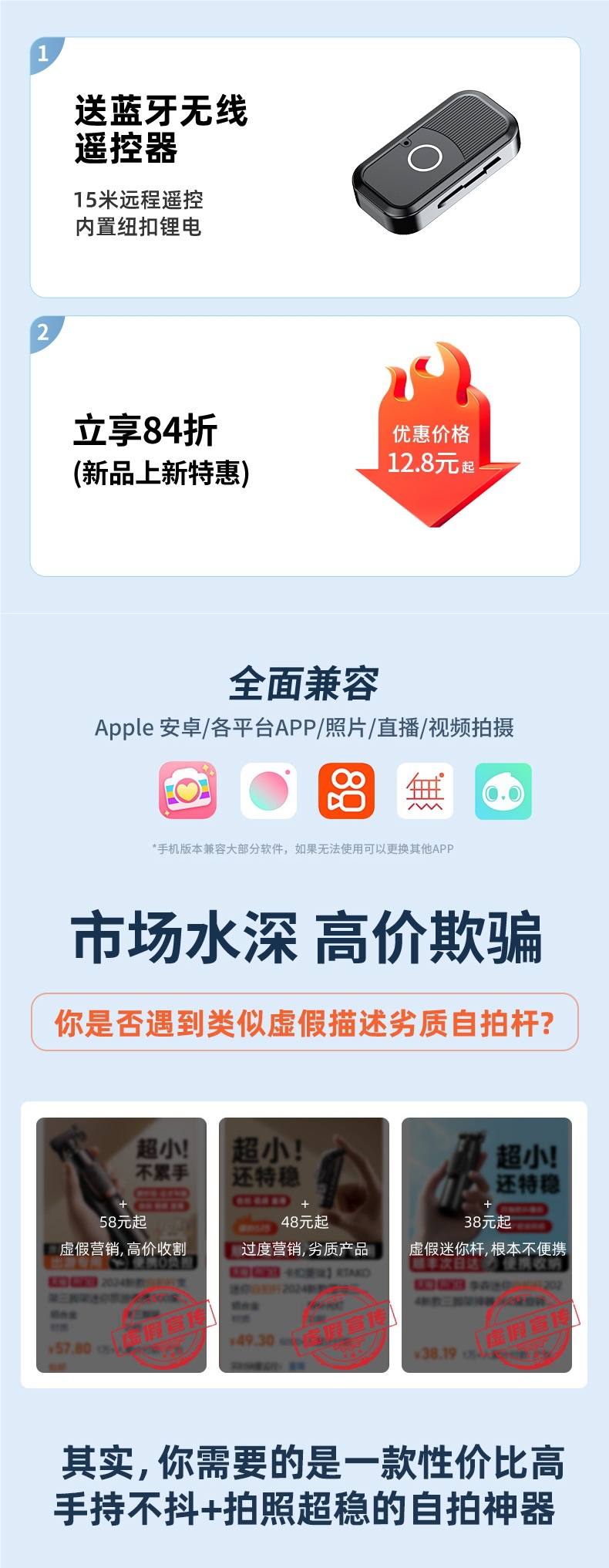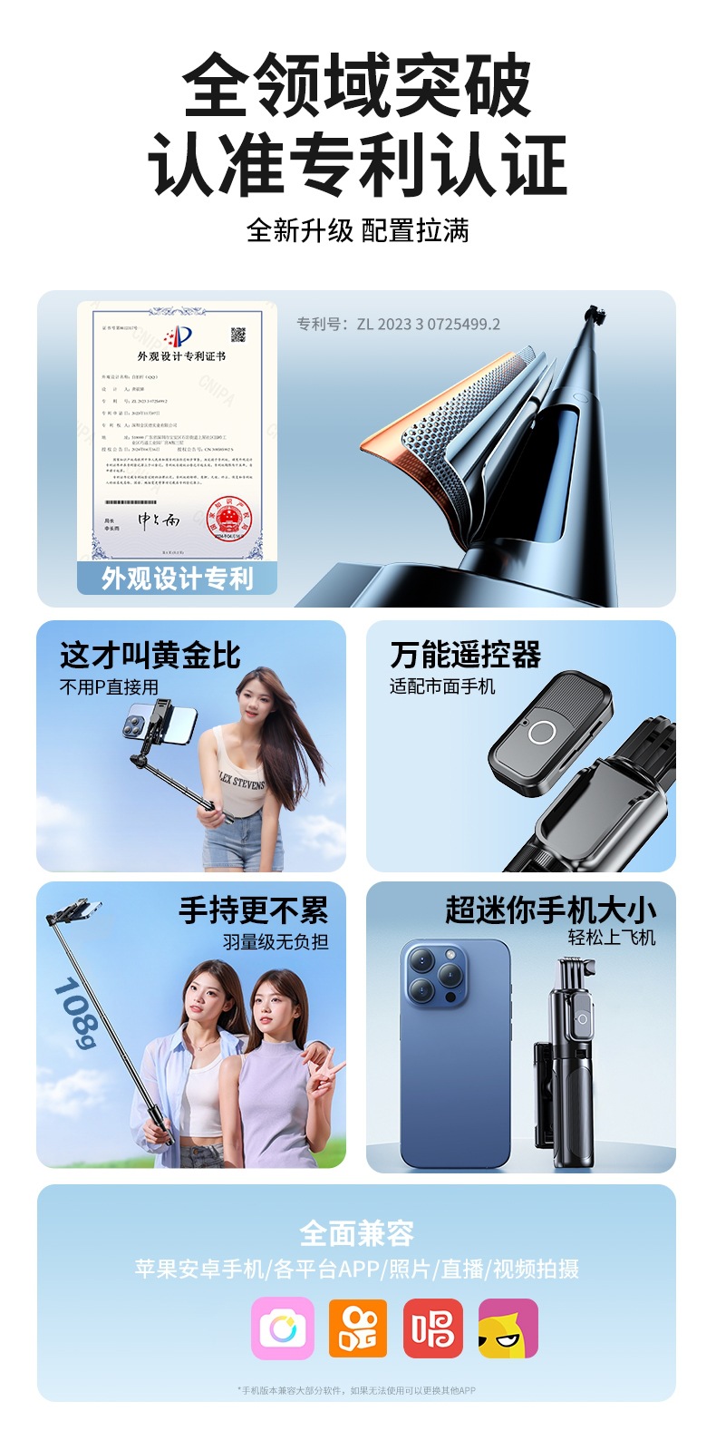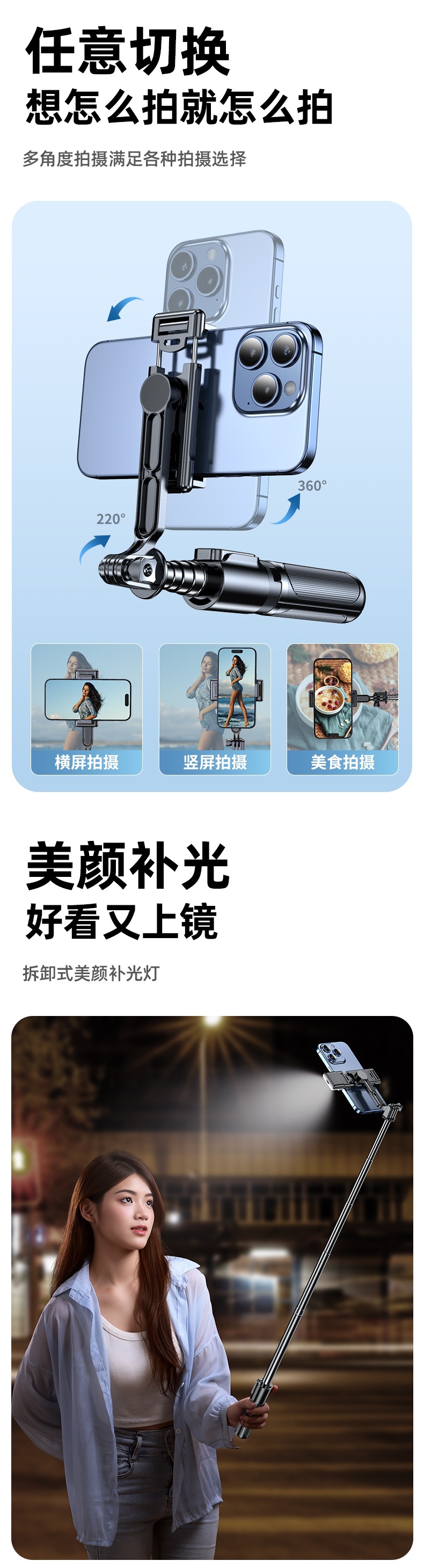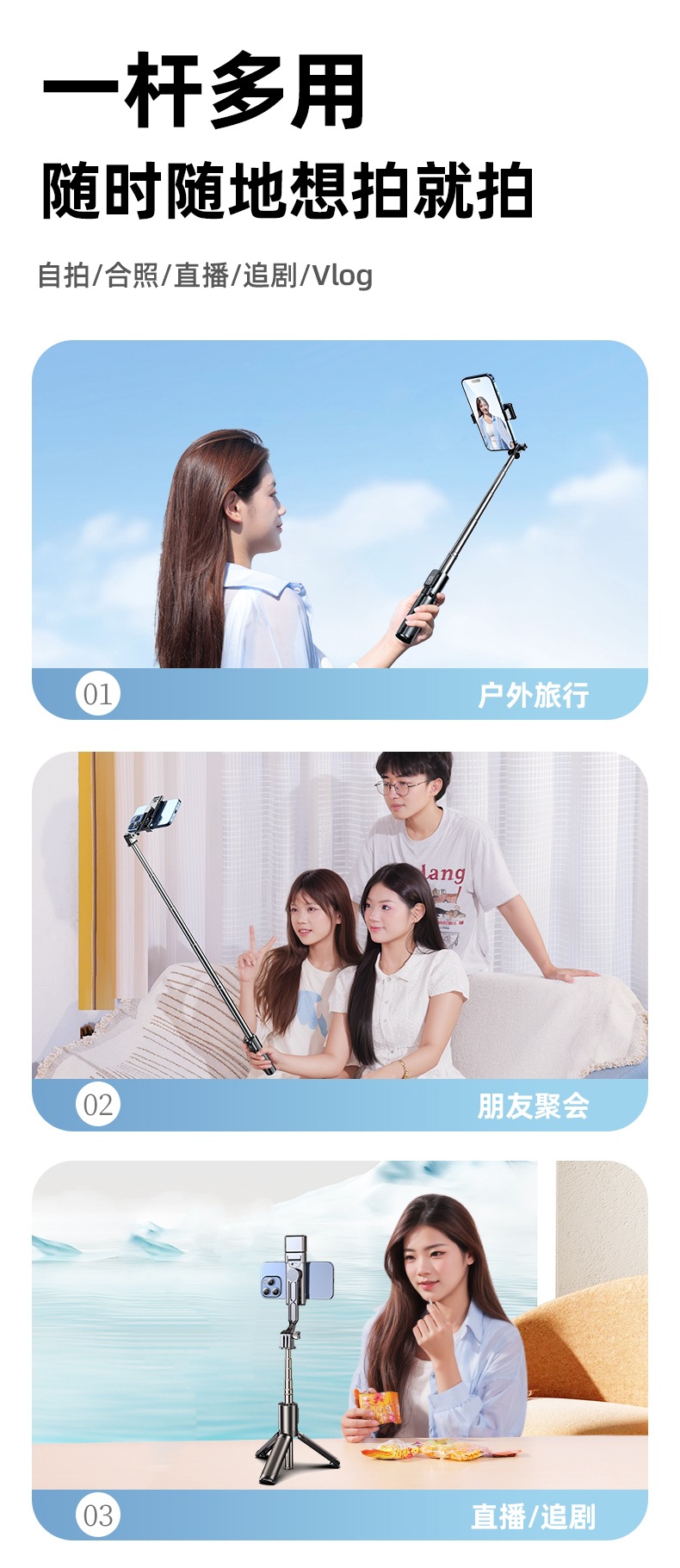 케룬 르 미니 셀카 스틱 여행 휴대용 바닥 삼각대 사진 2025 새로운 휴대 전화 유니버설 vlog스토어 가기