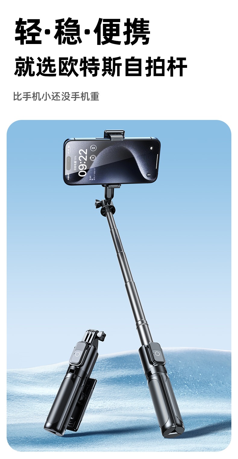• 1m 블랙 [셀카모델] 탄소합금이 안정적이고 흔들리지 않음★휴대성 0 부담★휴대용 셀카