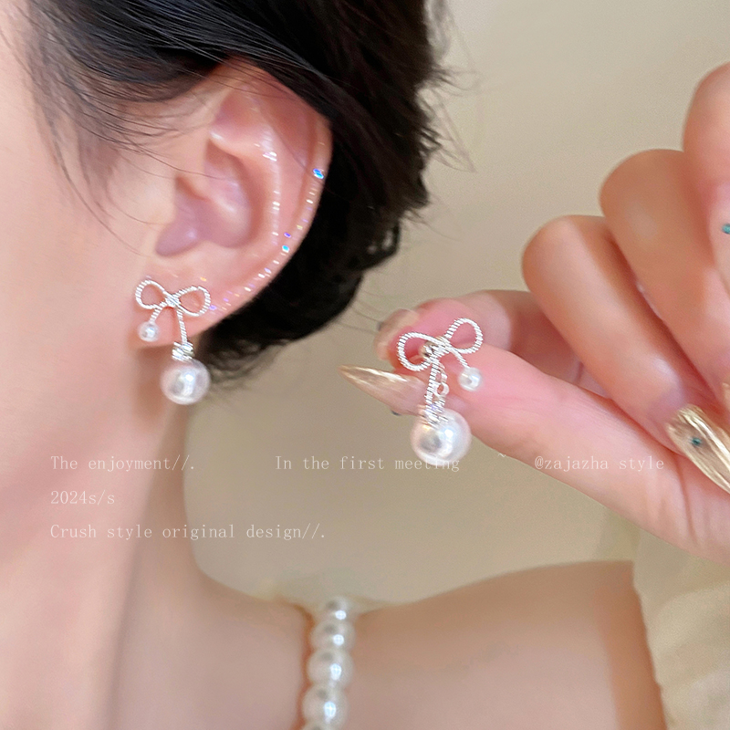 활 진주 지르콘 귀걸이 여성의 2025 새로운 빛 럭셔리 하이 엔드 틈새 디자인 귀걸이 투웨어 귀걸이스토어 가기