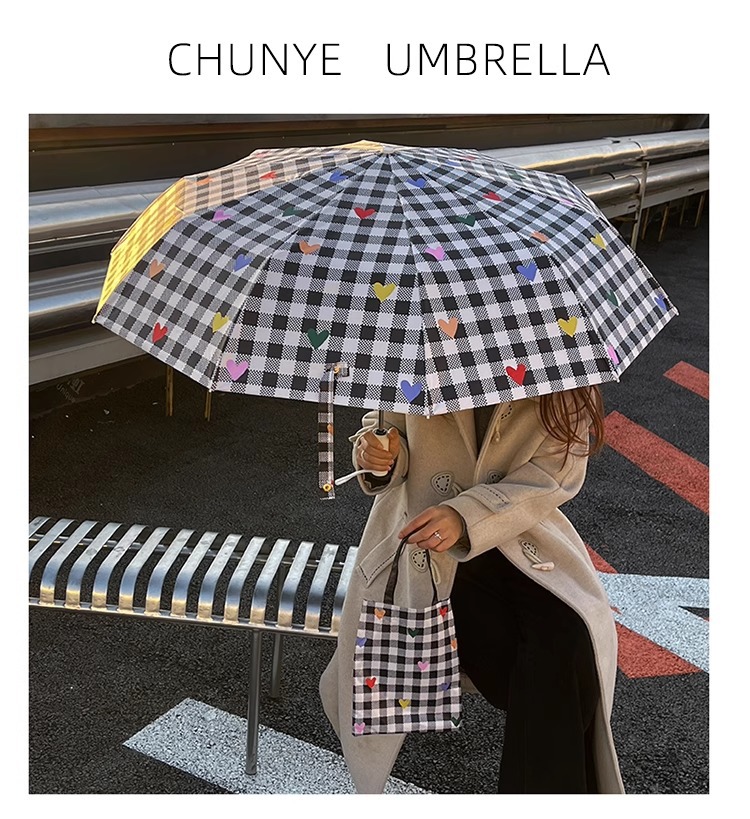 • 특대형 자동우산 10갈비 직경 105cm-크림블랙 그리드