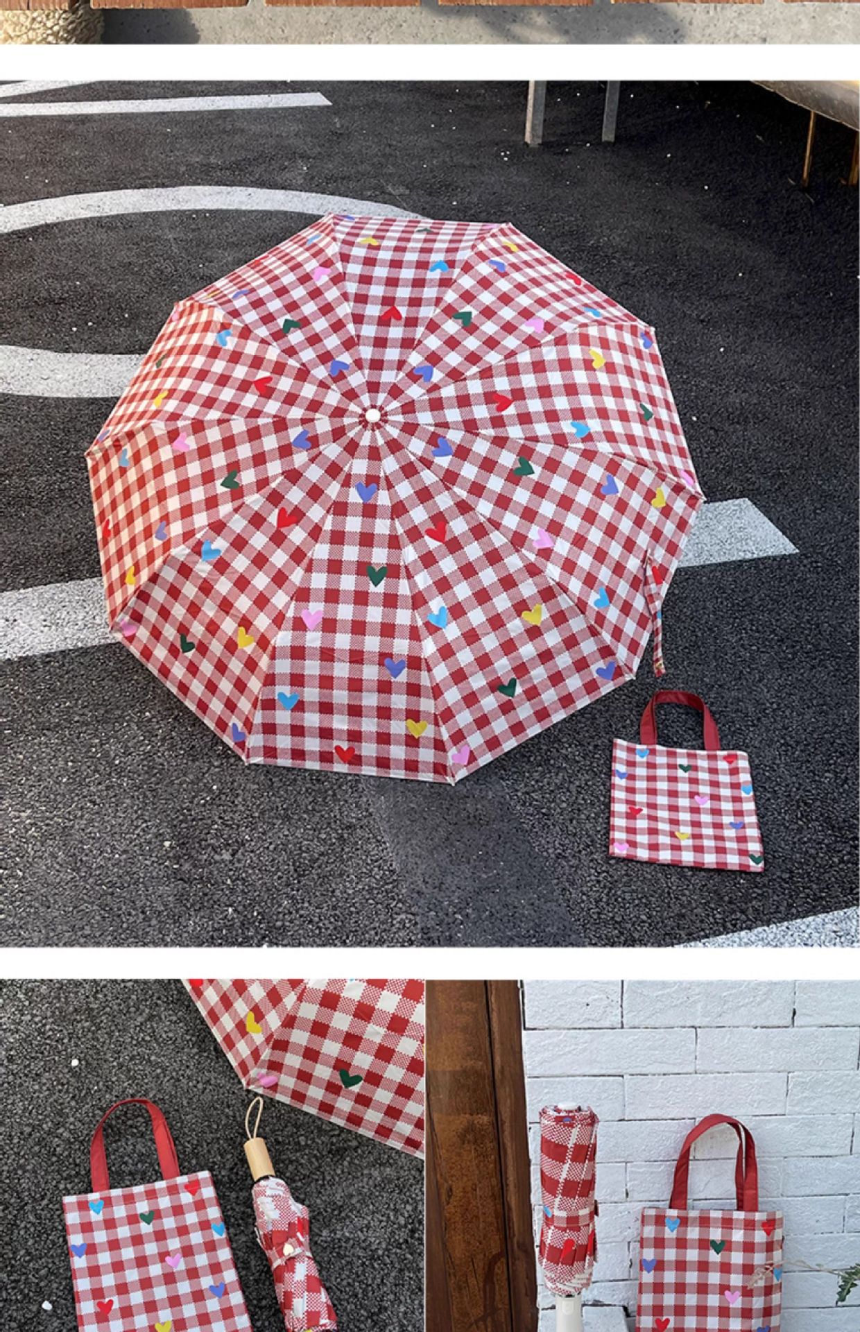 • 특대형 자동우산 10갈비 직경 105cm-크림레드 체크무늬