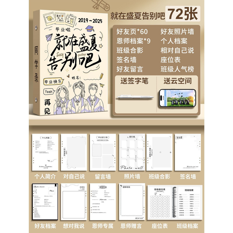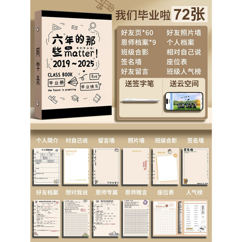 시험지, 동급생 녹음, 6학년 졸업 기념 앨범, 여학생 스타일 틈새 고급 졸업 앨범