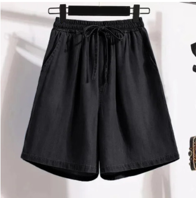 여성용 텐셀 데님 반바지 여름 신작 얇은 얼음 실크 캐주얼 루즈 와이드 레그 하이 웨이스트 A 라인 핫 팬츠 대형스토어 가기