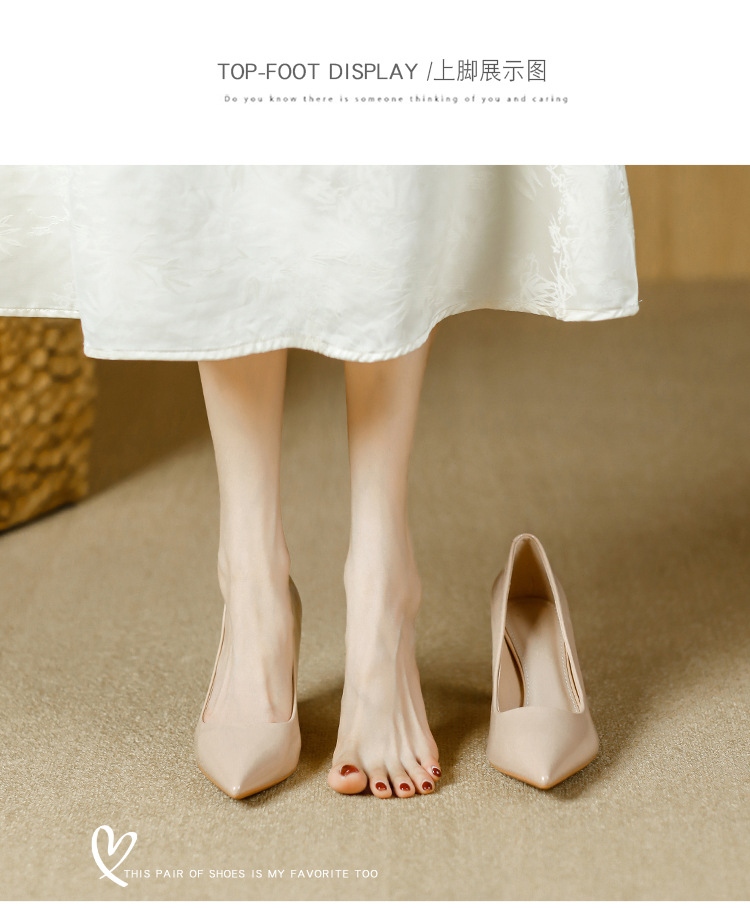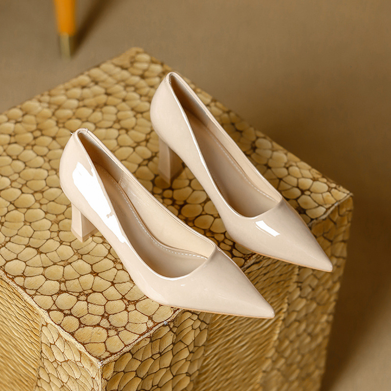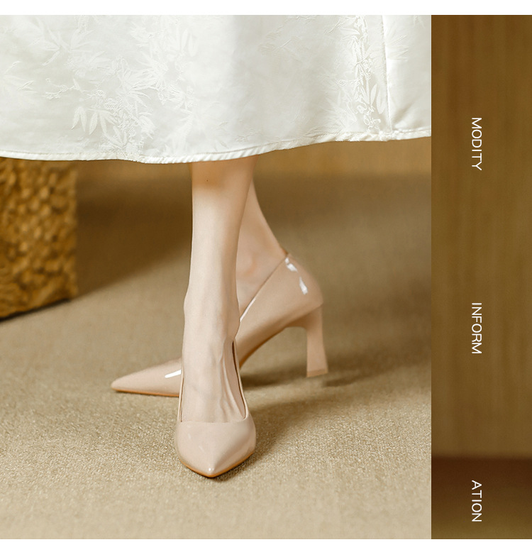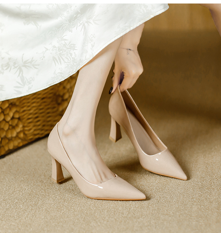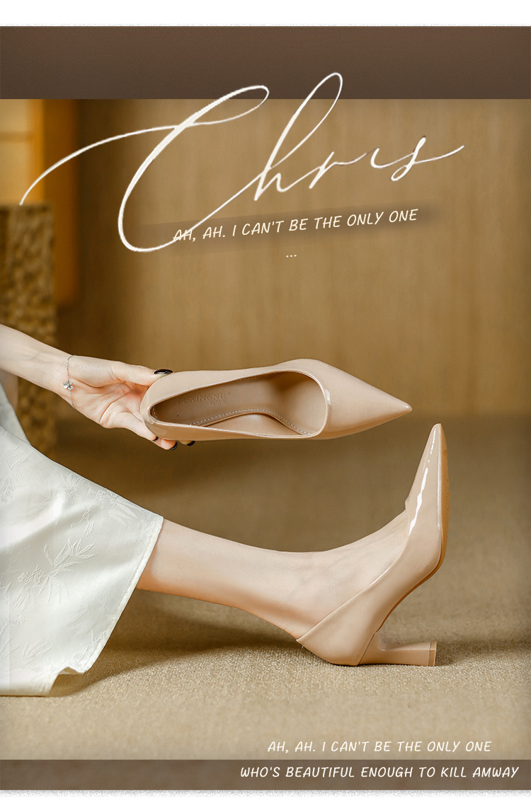 여성용 누드 포인티드 토 두꺼운 굽 하이힐, 5cm, 2025 신형 부드러운 가죽 5cm, 스커트와 함께 신발이 피곤하지 않은 신발스토어 가기