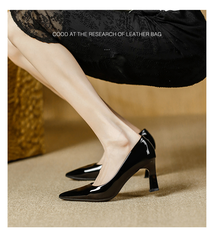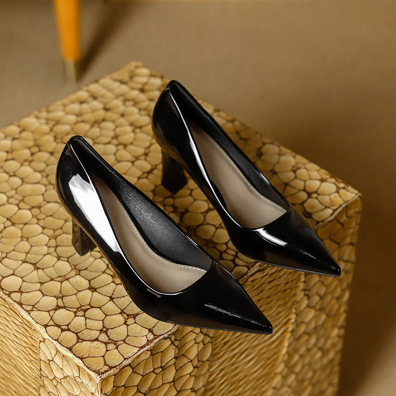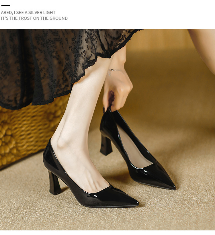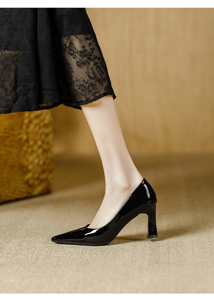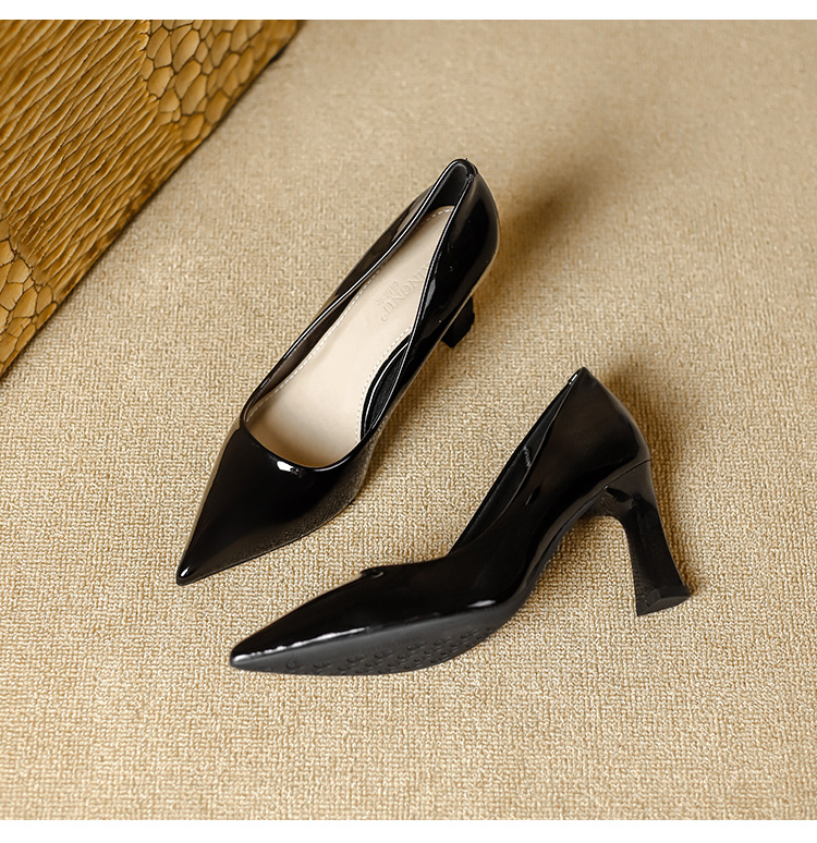 여성용 누드 포인티드 토 두꺼운 굽 하이힐, 5cm, 2025 신형 부드러운 가죽 5cm, 스커트와 함께 신발이 피곤하지 않은 신발스토어 가기