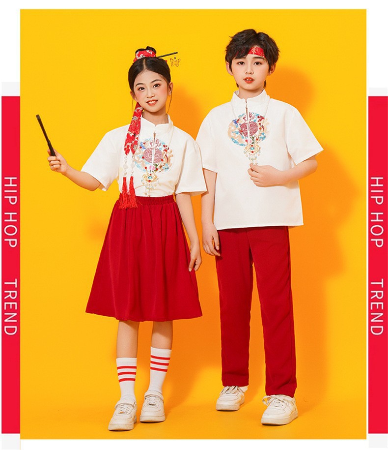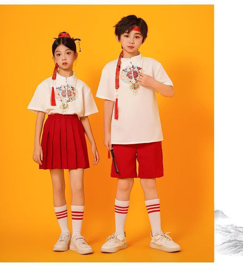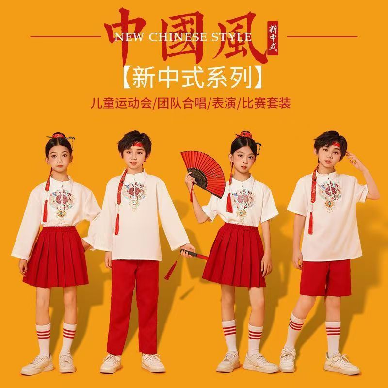 6 월 1 일 국경일 합창 중국 스타일 어린이 공연 옷 초등 및 중등 학교 수업 옷시 암송 공연 옷 운동복스토어 가기