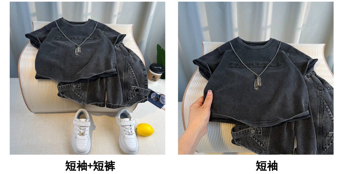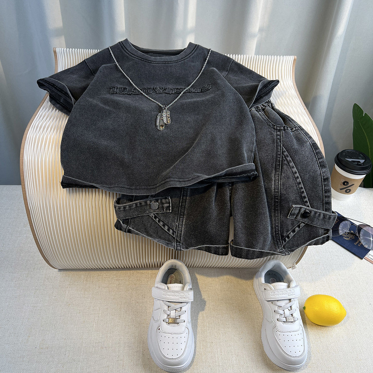 남학생 한국식 잘 생긴 반팔 세트 여름 하이 엔드 어린이 세트 베이비 스트리트 티셔츠 반바지 투피스 유행 세트스토어 가기