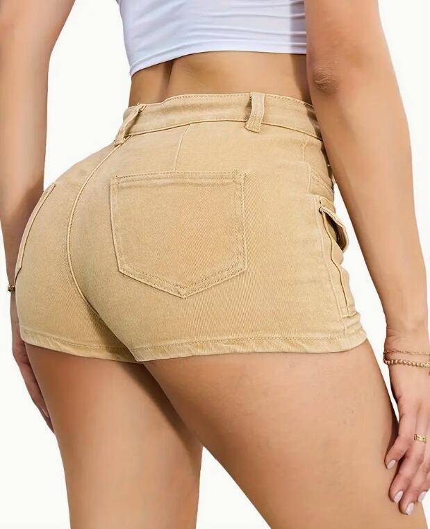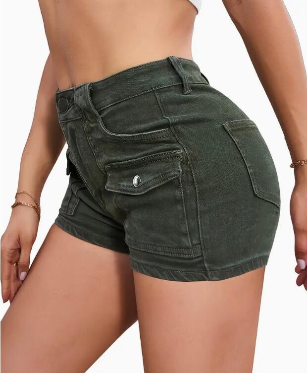 아마존 TEMU 유럽 및 미국 국경 간 여성 스트레치 데님 반바지 스트리트 스파이스 단색 청바지 여성 반바지스토어 가기