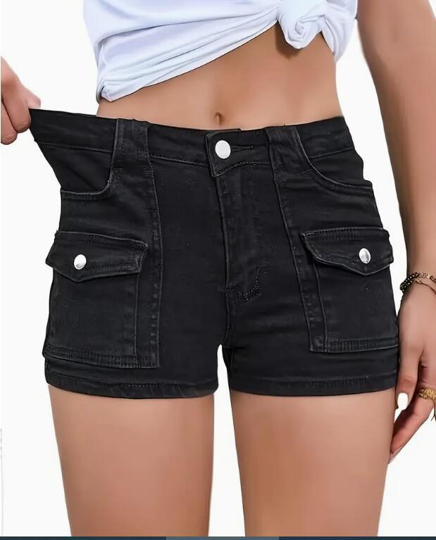 아마존 TEMU 유럽 및 미국 국경 간 여성 스트레치 데님 반바지 스트리트 스파이스 단색 청바지 여성 반바지