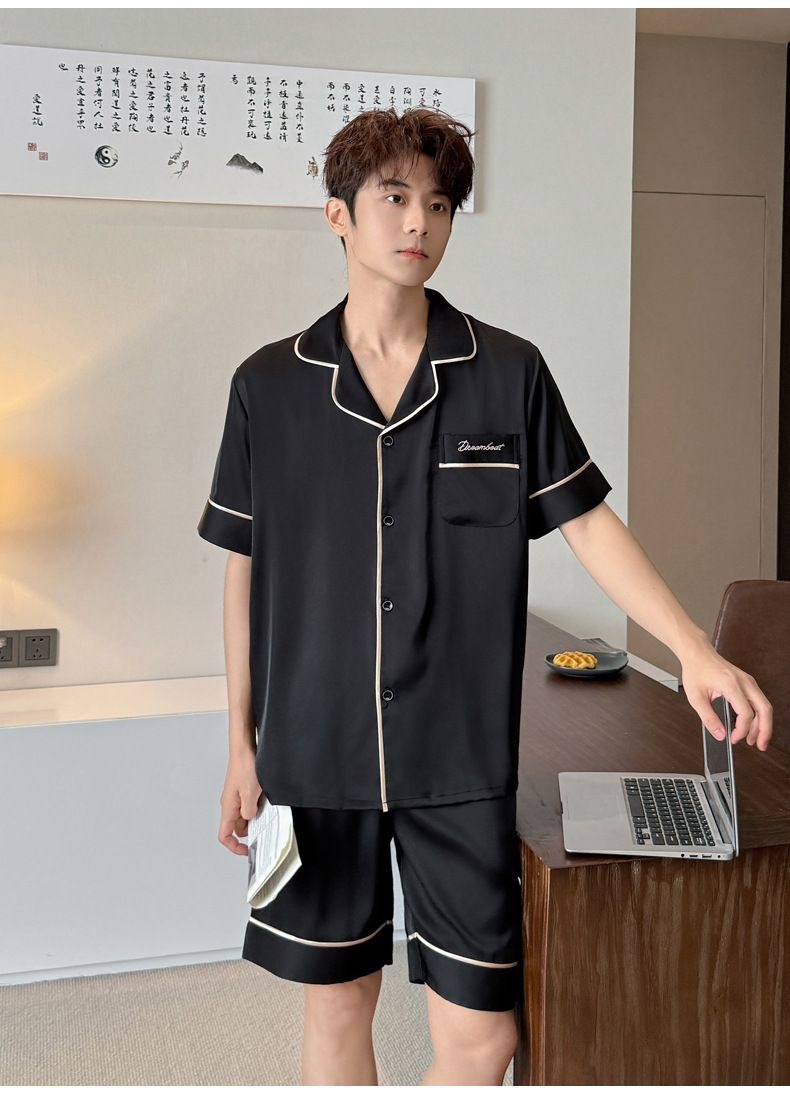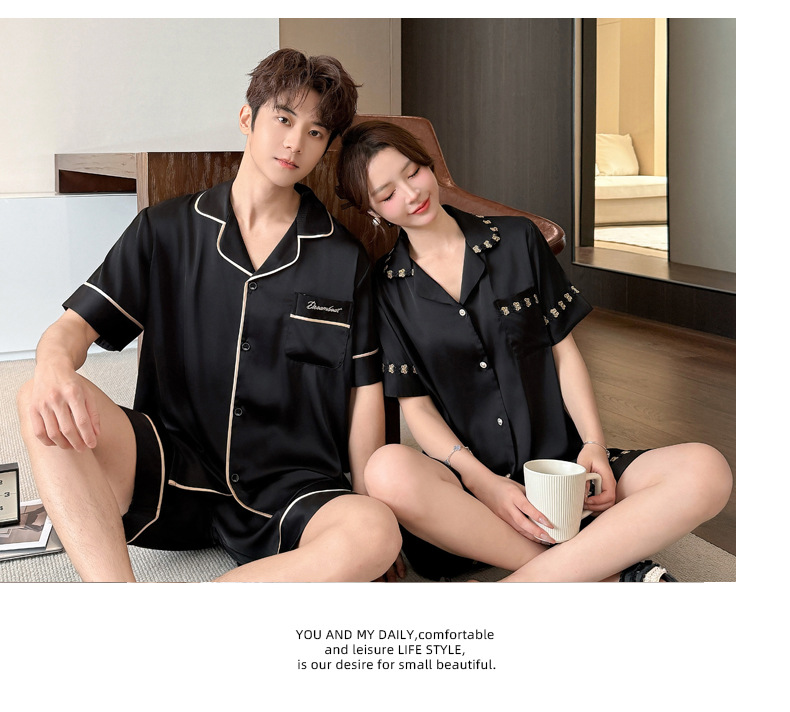커플 잠옷, 여성 여름 반팔 반바지, 캐주얼 루즈 슈트, 솔리드 컬러 가디건, 남성용 홈웨어, 야외에서 착용 가능스토어 가기