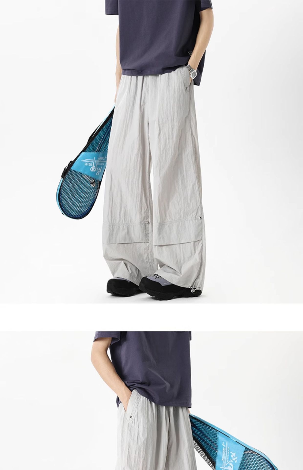 야외 트렌디 브랜드 와이드 레그 소박한 바지 남자 여름 미국 리벳 스포츠 등산 바지 하이 스트리트 퀵 건조 캐주얼 바지