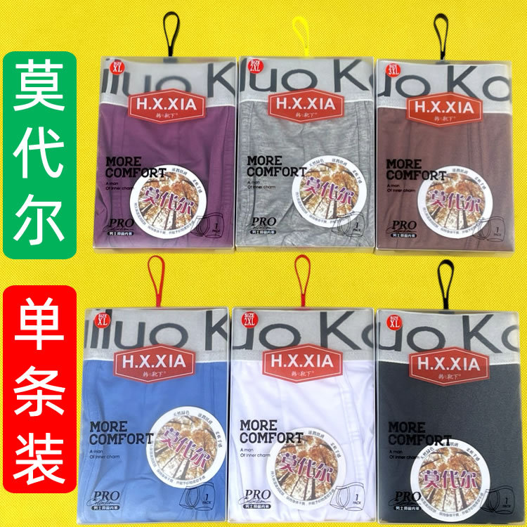단일 박스형 모달 남성 속옷 도매 복서 팬티 CUK 볼록 청소년 사각형 솔리드 컬러 남성 대형 실버 엣지