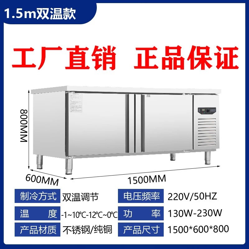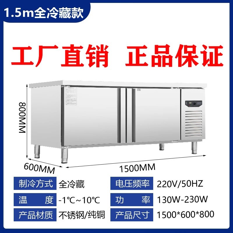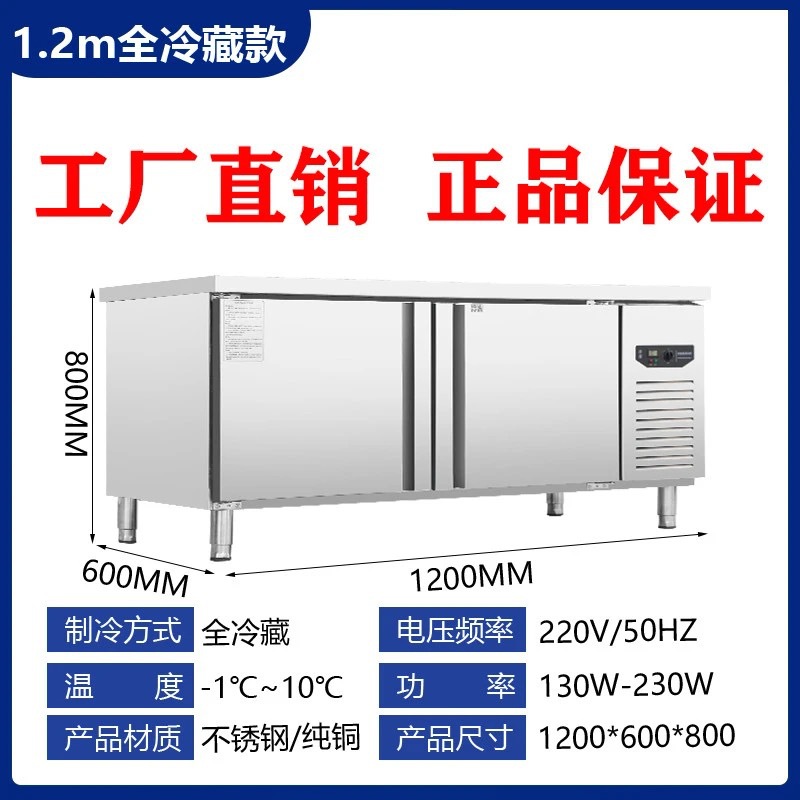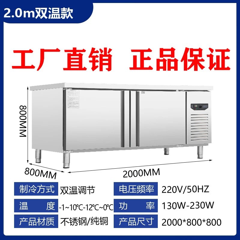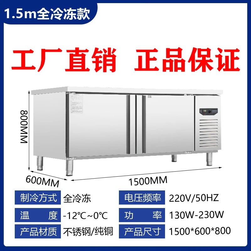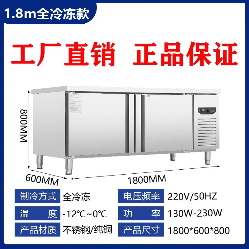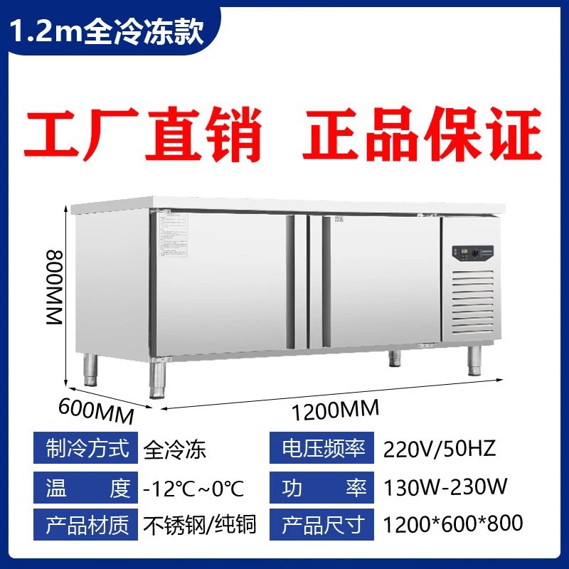 상업용 평면 냉동고 냉장 작업대 상업용 냉동고 냉동 스테인레스 스틸 작업대 냉장고 신선 유지 캐비닛 냉장고스토어 가기