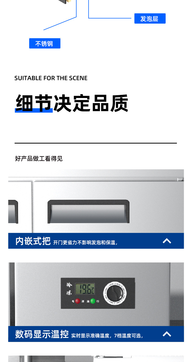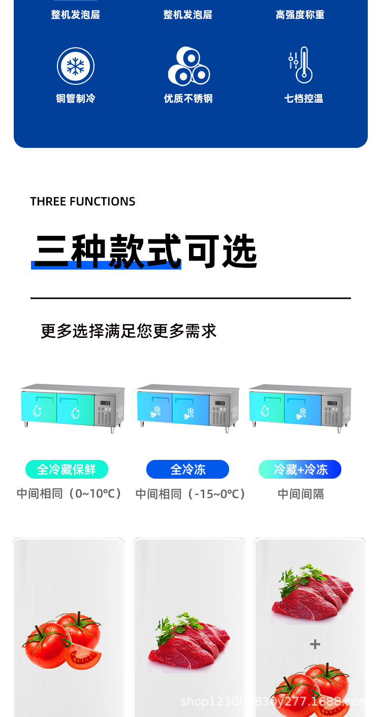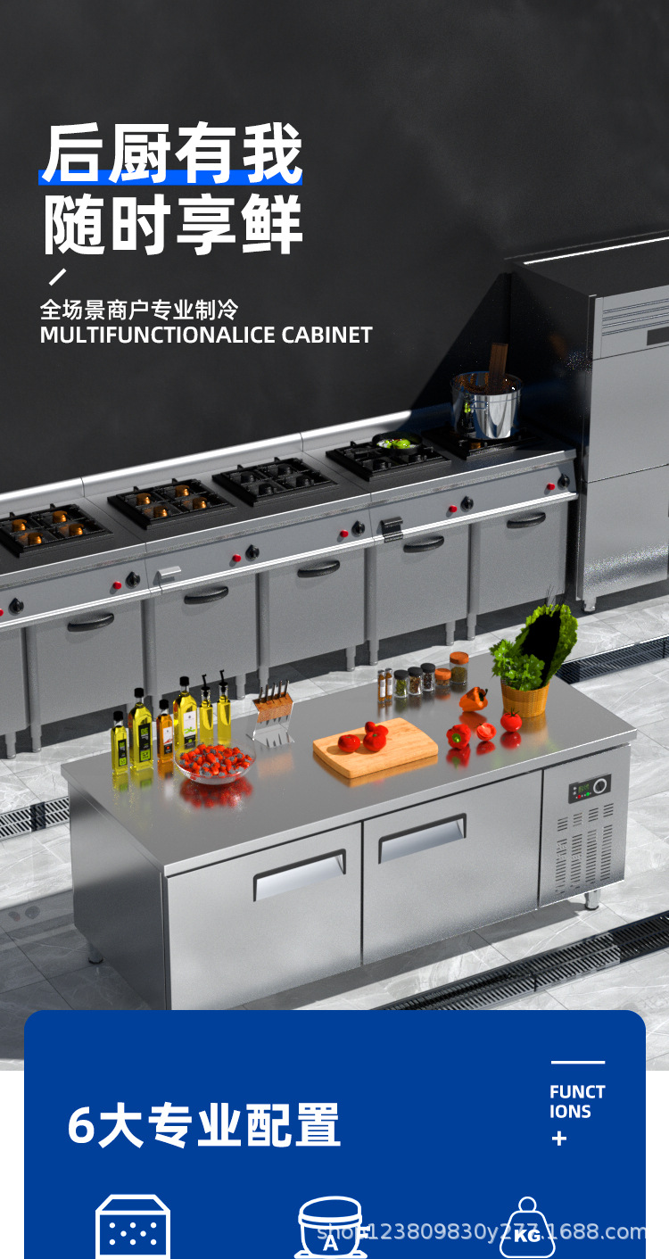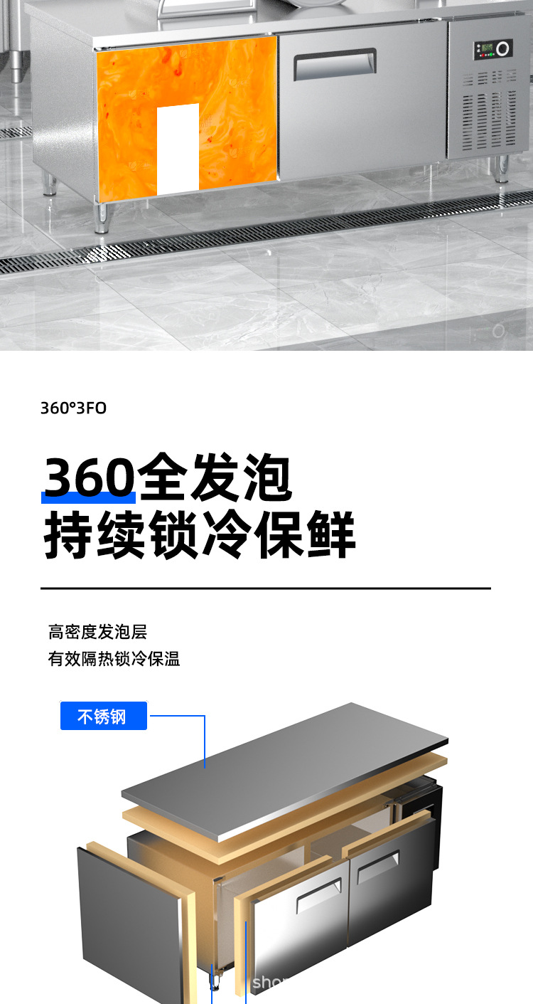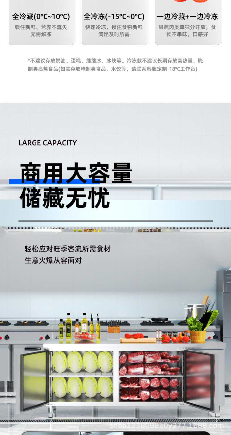 상업용 평면 냉동고 냉장 작업대 상업용 냉동고 냉동 스테인레스 스틸 작업대 냉장고 신선 유지 캐비닛 냉장고스토어 가기
