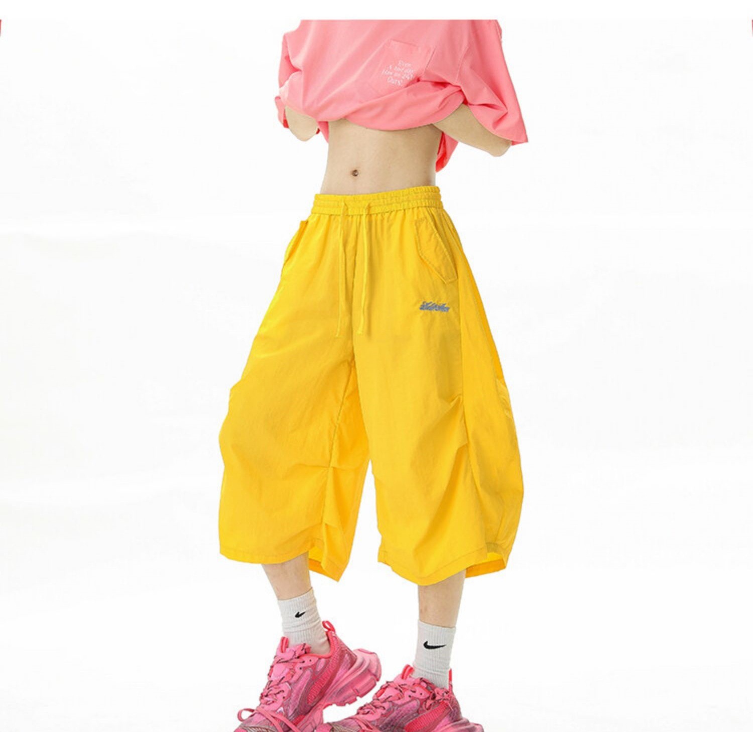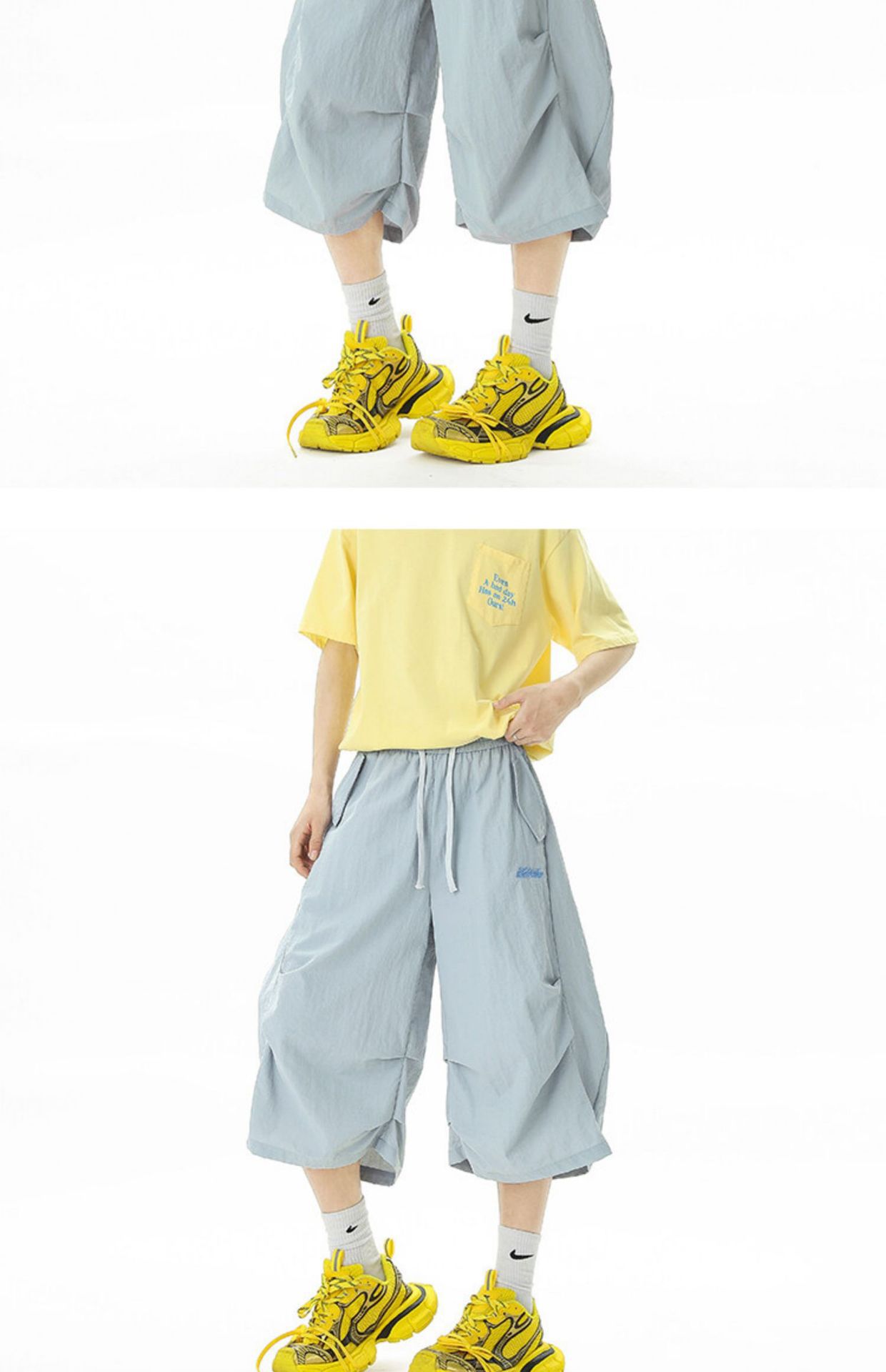 아이스 실크 빠른 건조 도파민 반바지 남성용 트렌디 브랜드 수놓은 Pleated Puppies 잘 생긴 캐주얼 바지 여름 야외 시미 터 비치 바지