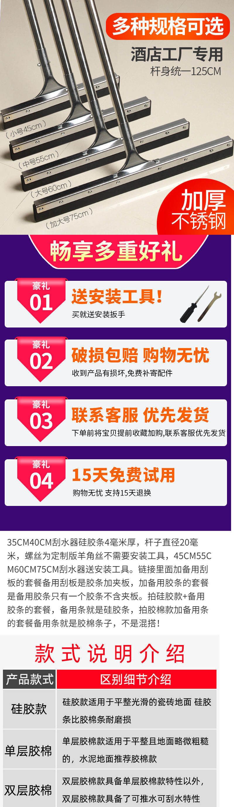 바닥 와이퍼 실리콘 바닥 와이퍼 걸레 상업용 스크레이퍼 가정용 목욕스토어 가기