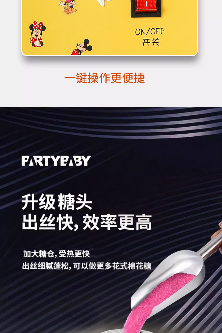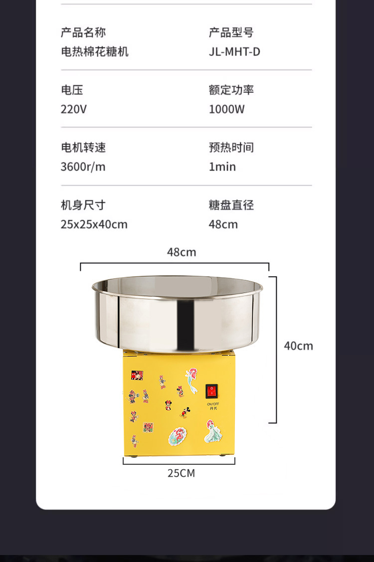 • 노란색 상업용 마시멜로 기계 + 종이스틱 2팩 + 유색설탕 1.0kg개