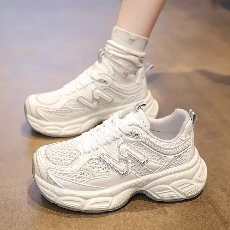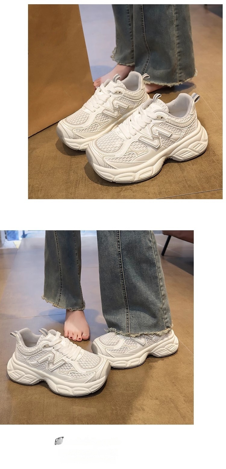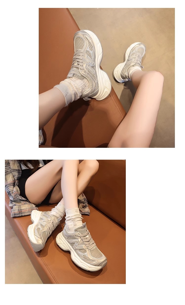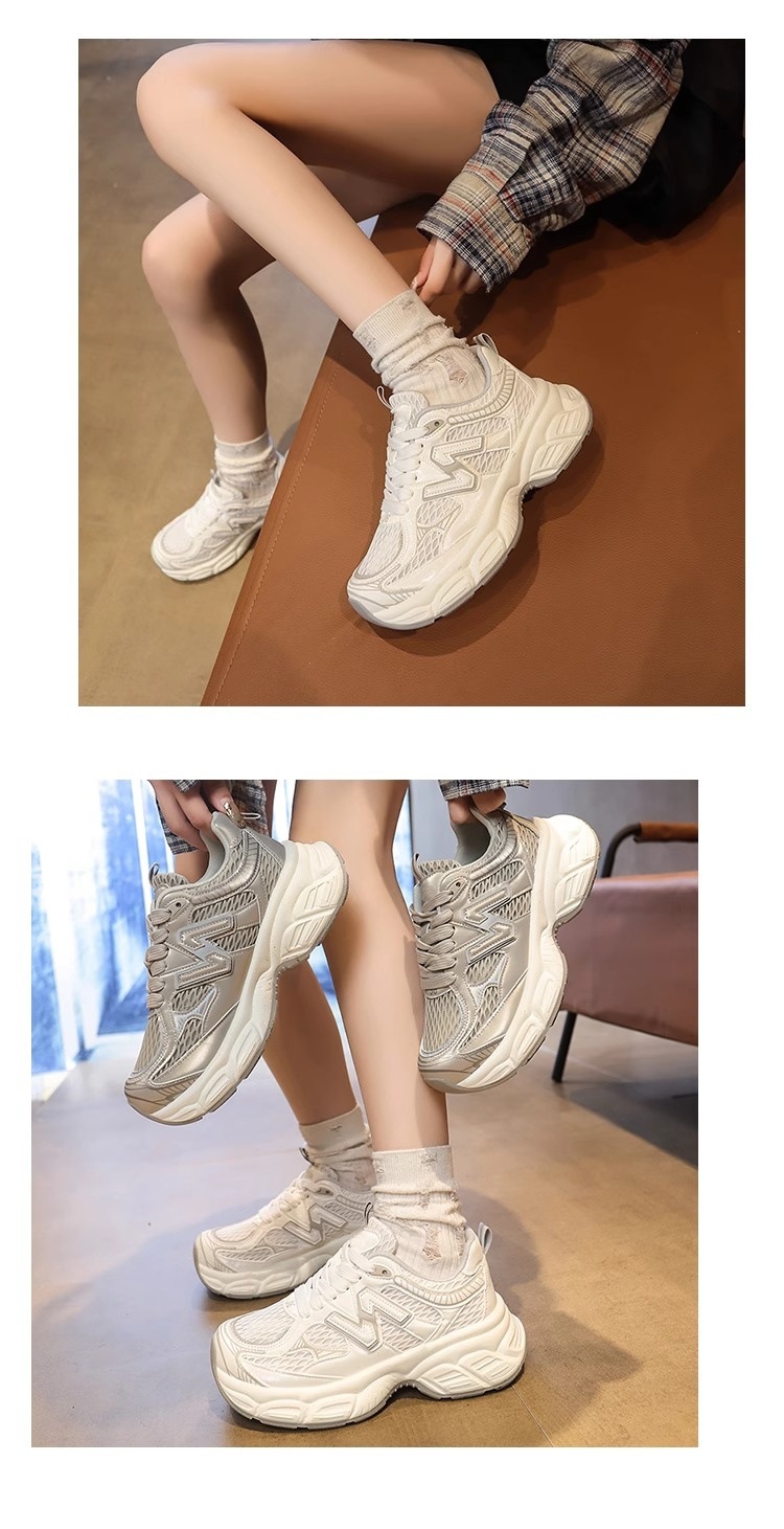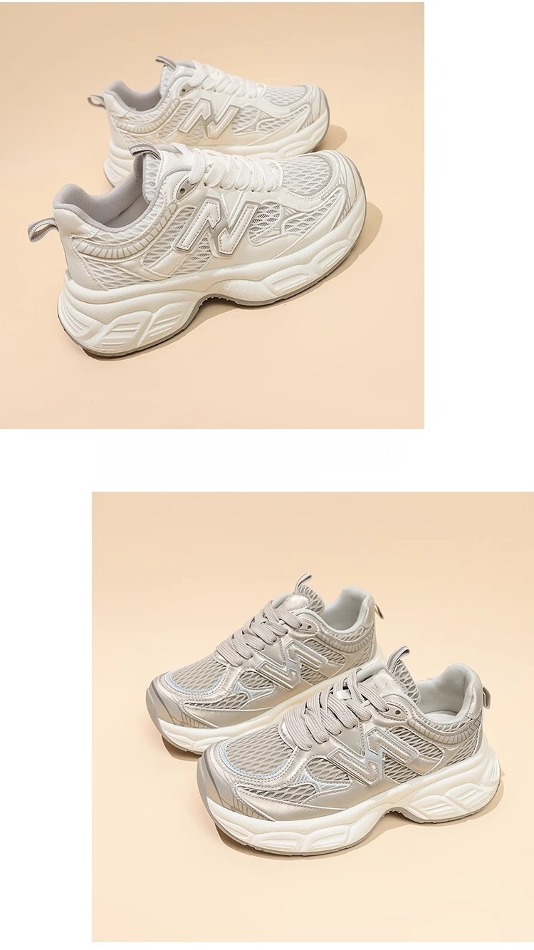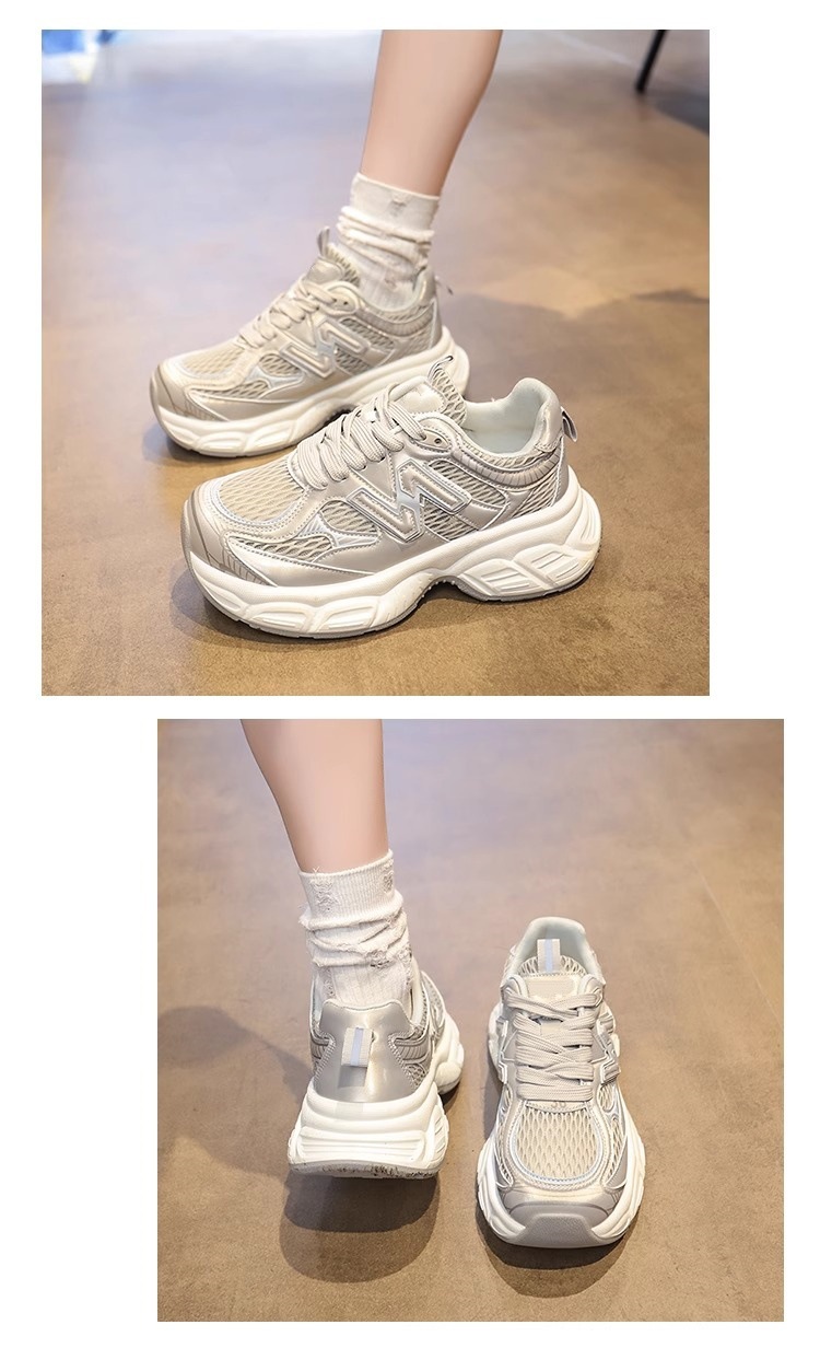 여성용 두꺼운 밑창 실버 아빠 신발 2025 새로운 봄 여름 메쉬 다용도 캐주얼 높이 증가 인기 슈퍼 핫 스포츠 신발스토어 가기