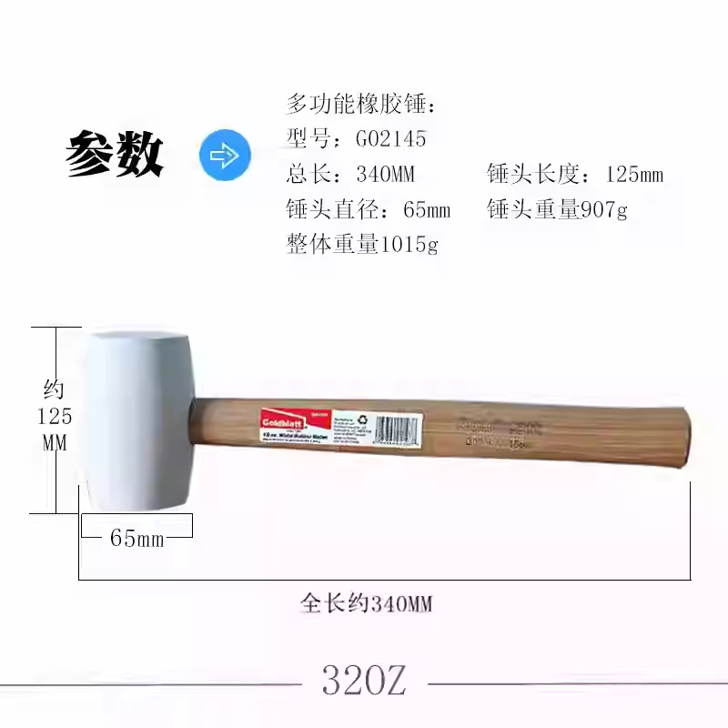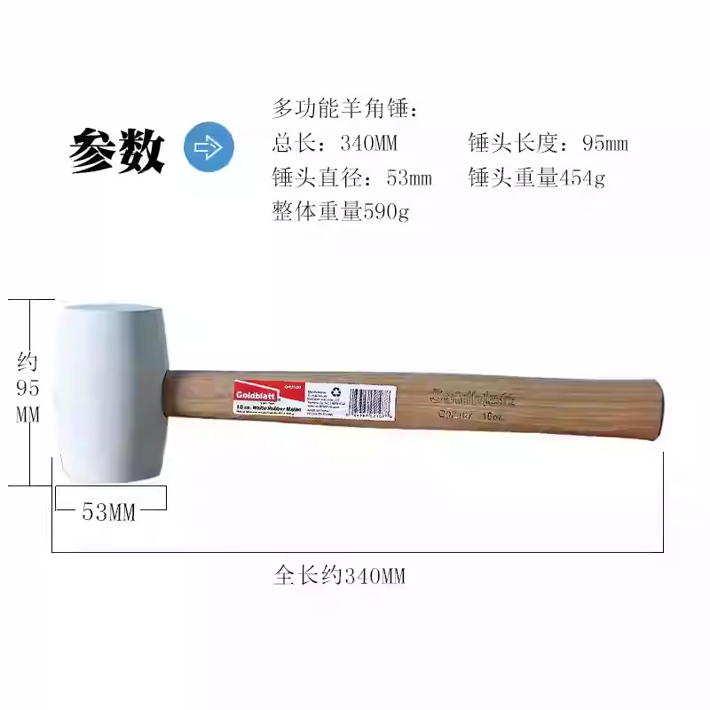 American Goldblatt 리바운드 방지 설치 망치 충격 방지 고무 가죽 망치 부드러운 손잡이 목공 망치 플레이트 망치 벽돌 바닥 망치