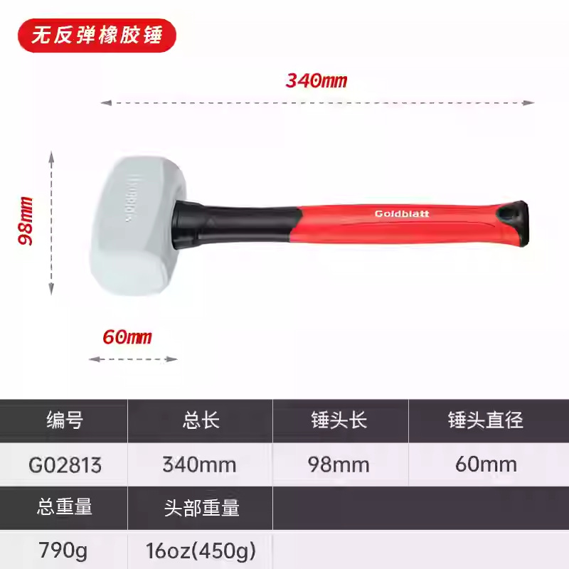 American Goldblatt 리바운드 방지 설치 망치 충격 방지 고무 가죽 망치 부드러운 손잡이 목공 망치 플레이트 망치 벽돌 바닥 망치스토어 가기