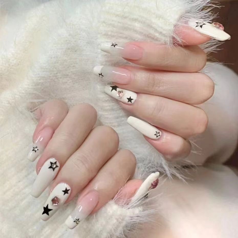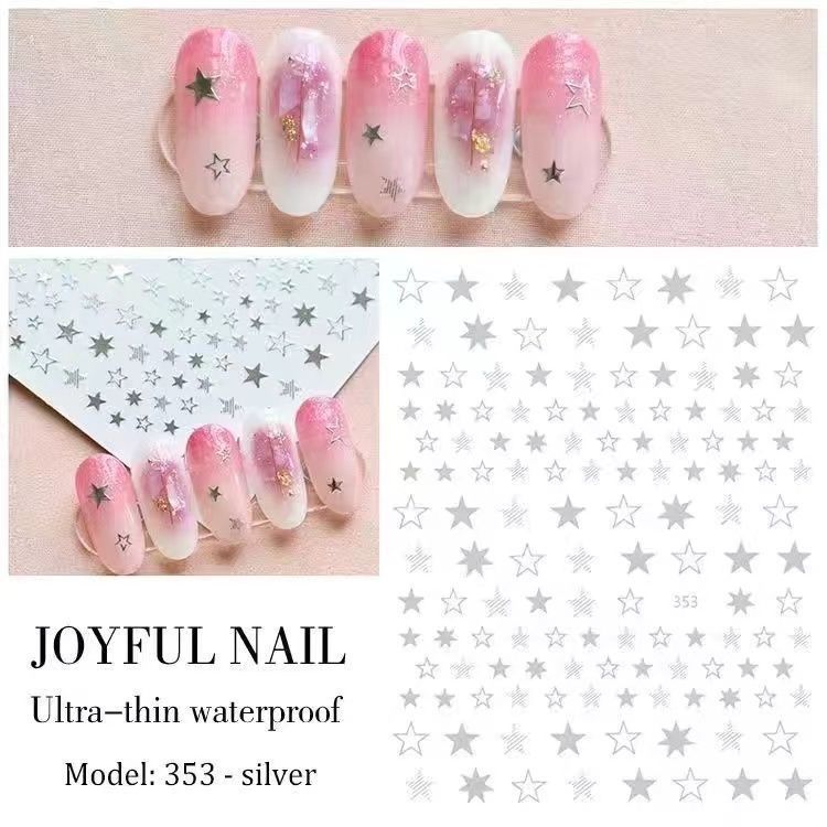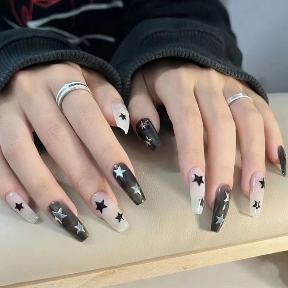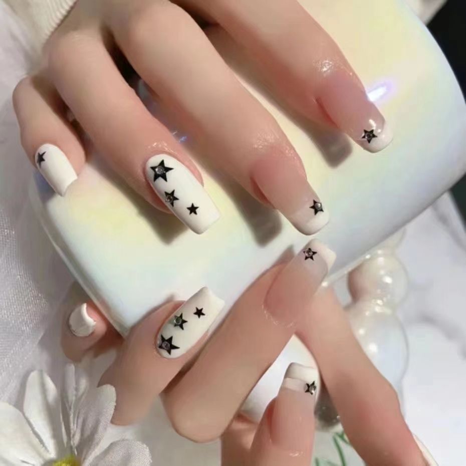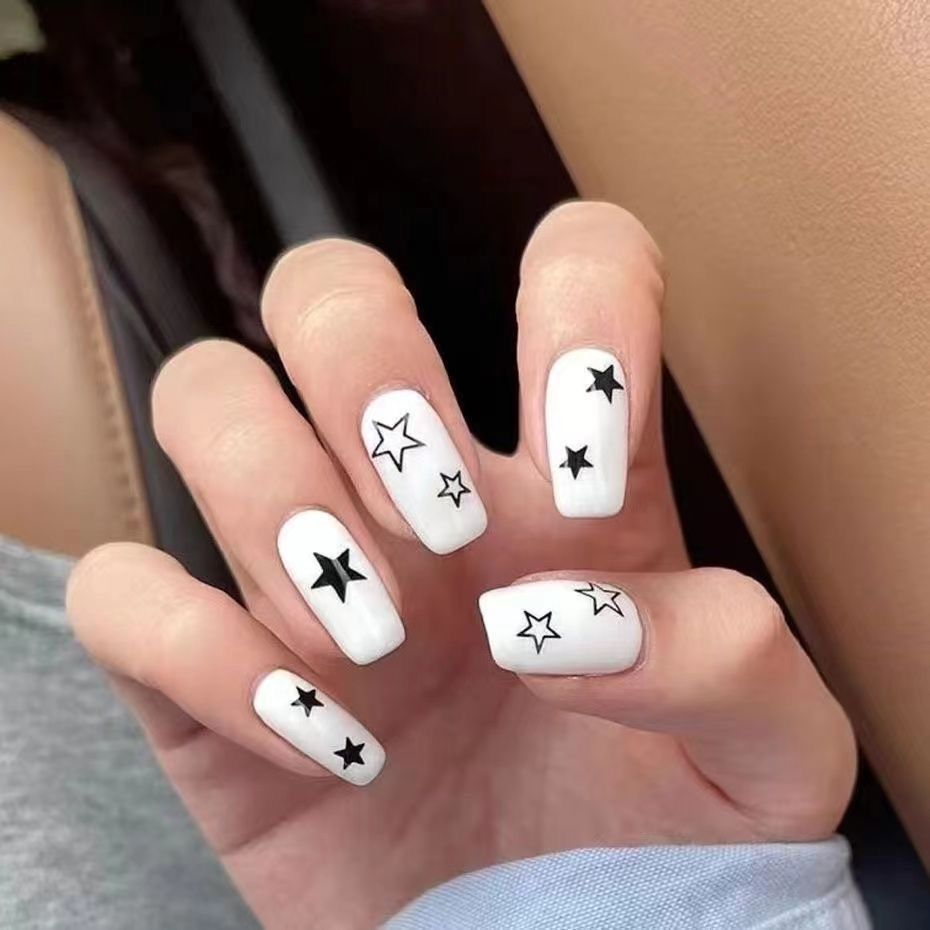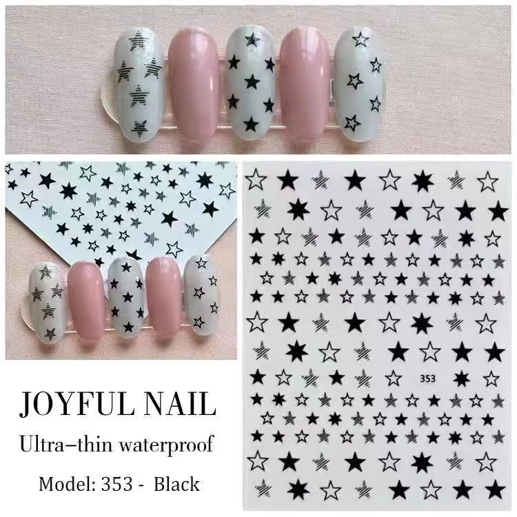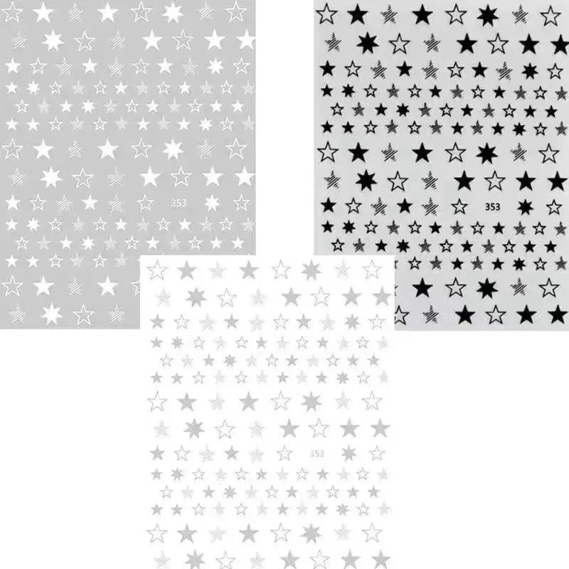속이 빈 다섯개 별 네일 아트 스티커 흑백 별 일본식 스타일 달콤하고 시원한 핫 소녀 스타 네일 접착 스티커
