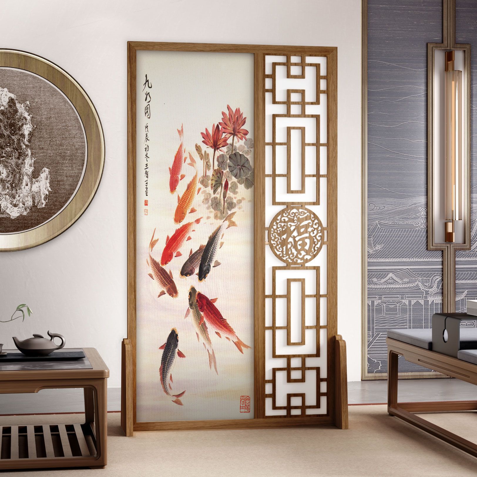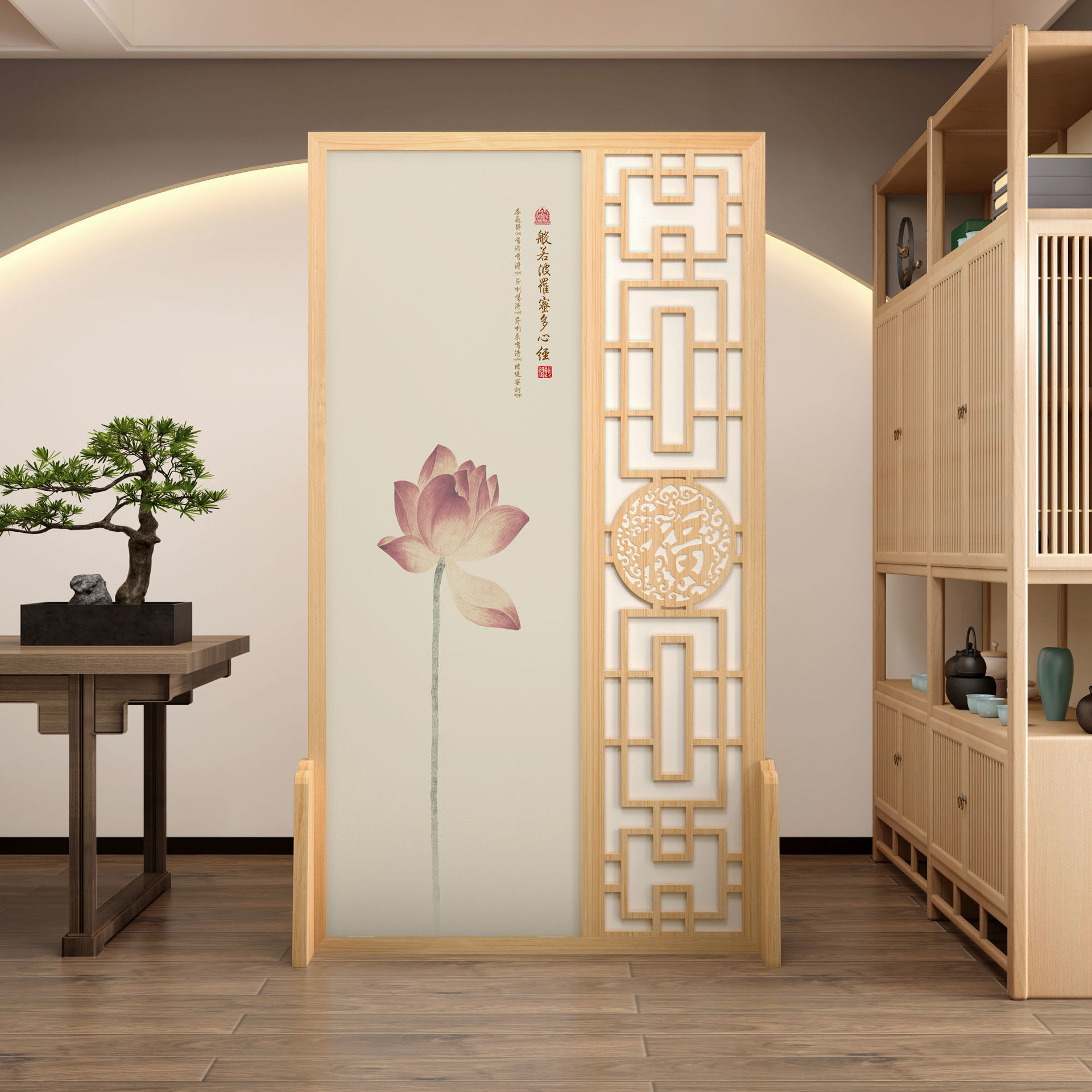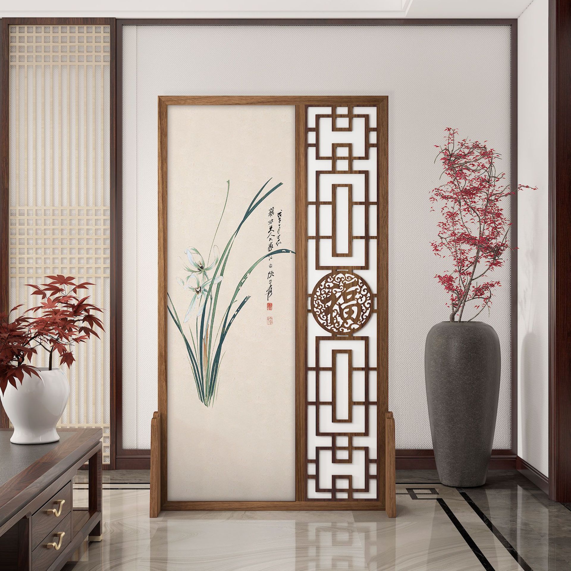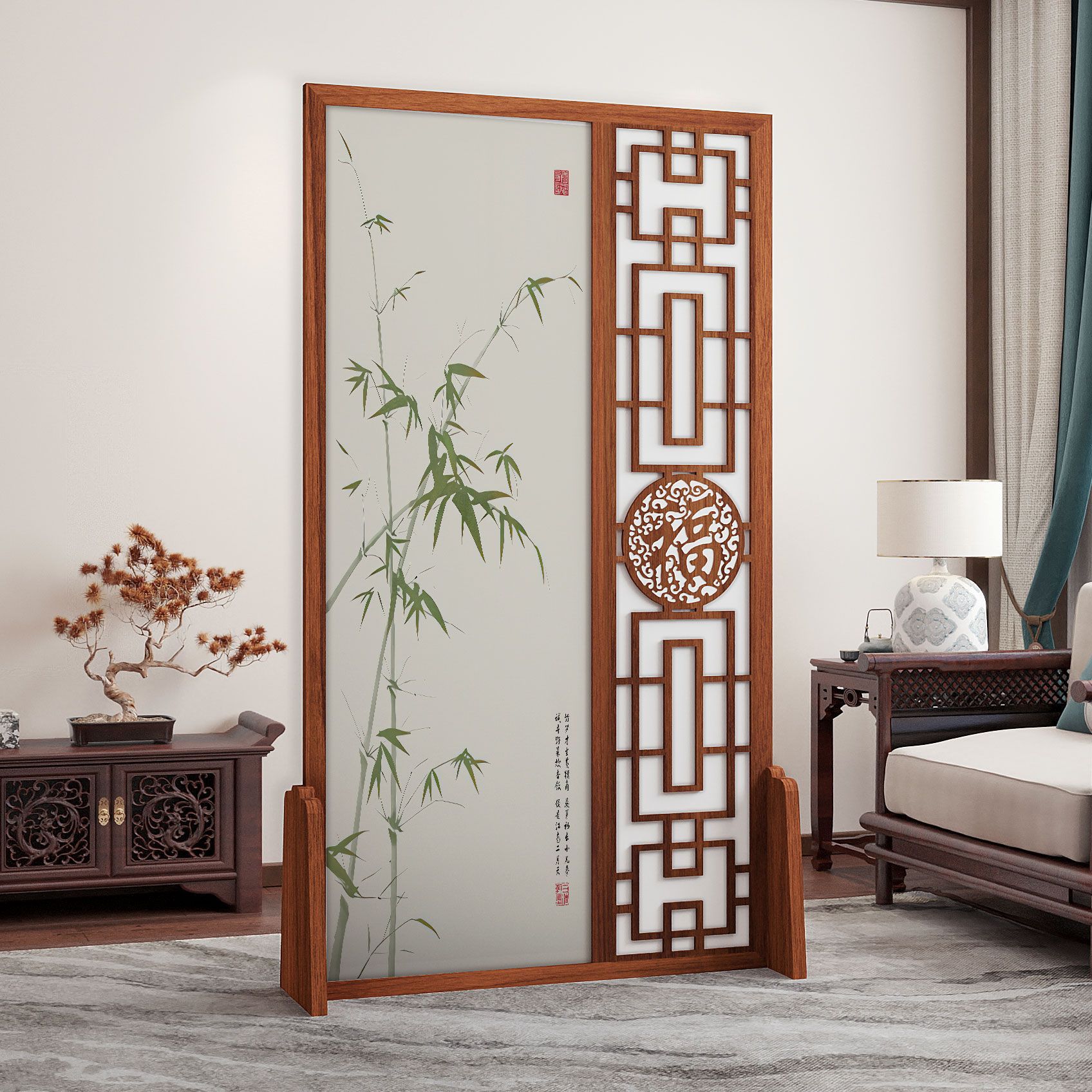 K曹 3 축복 현대 중국 스타일 패브릭 스크린 파티션 벽 모바일 입구 차단 현관 거실 침실 모조 단단한 나무스토어 가기