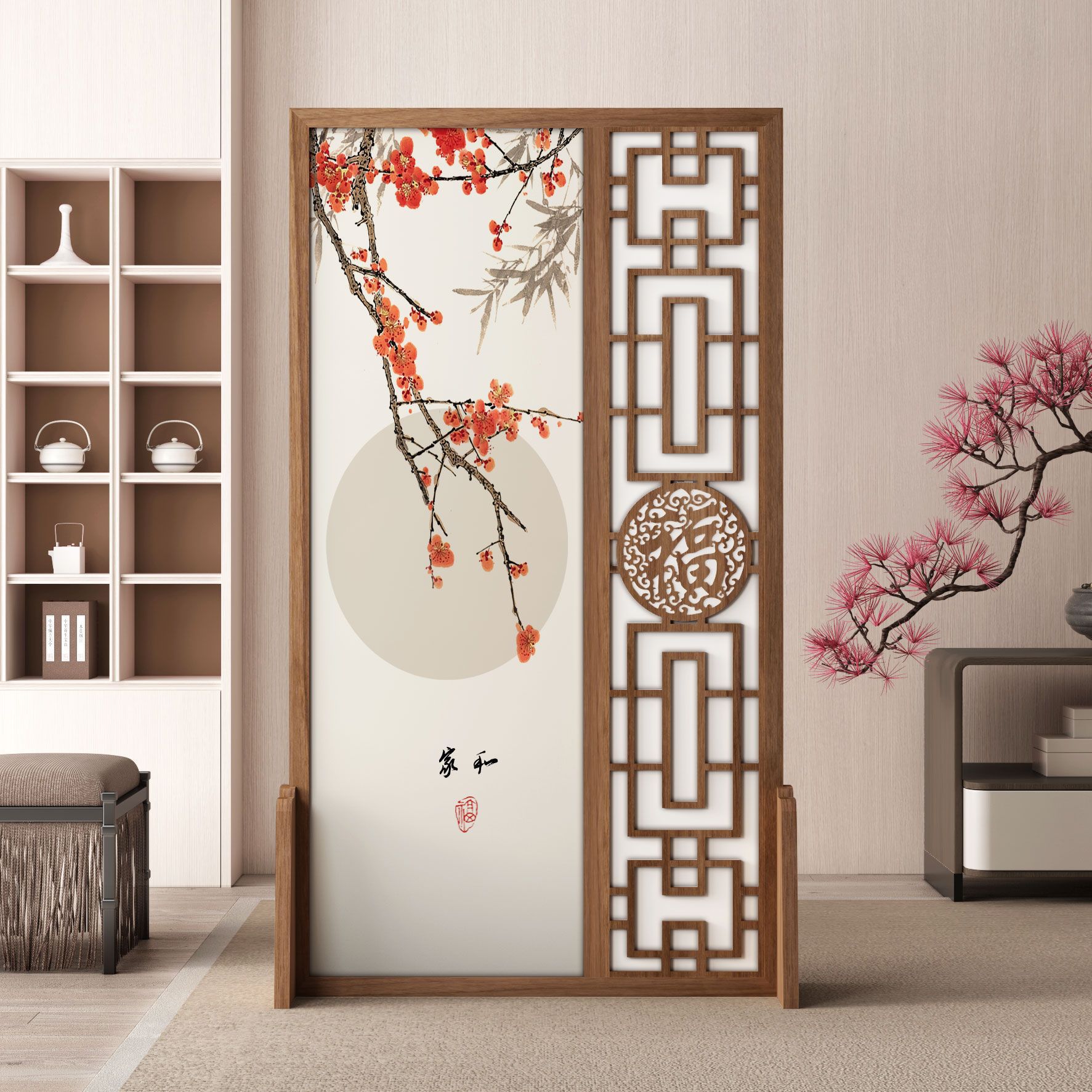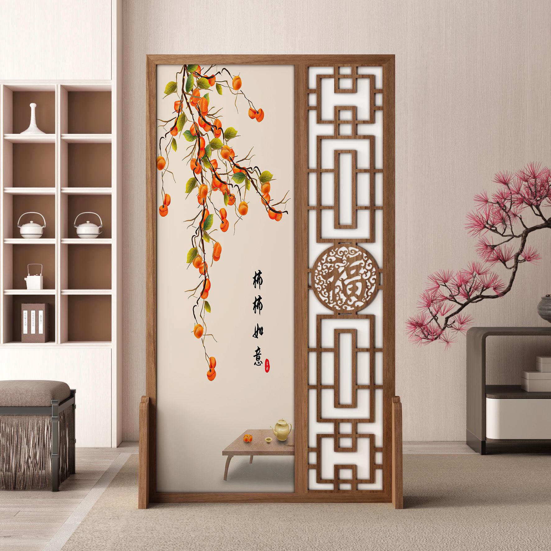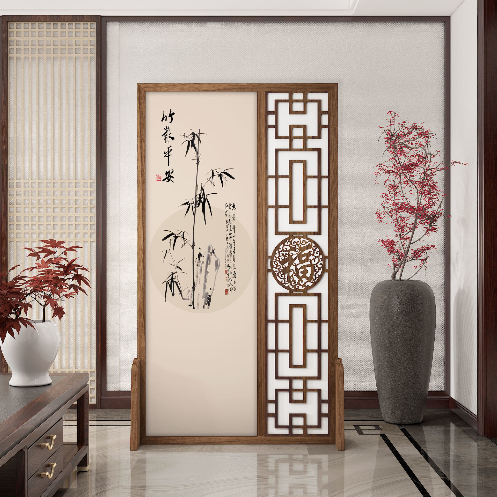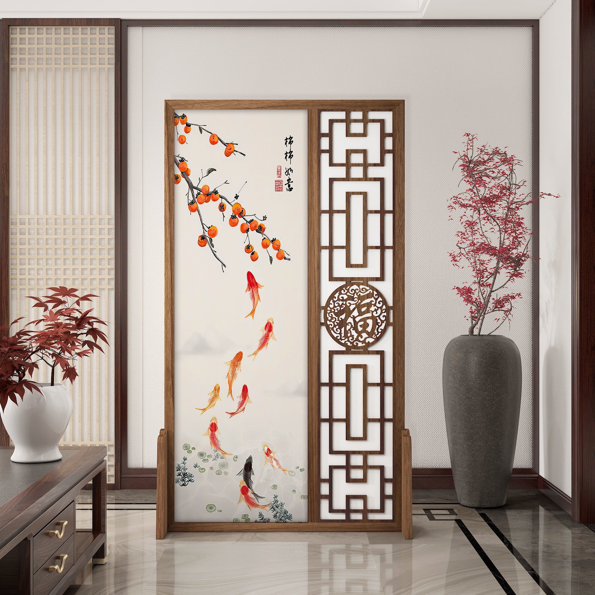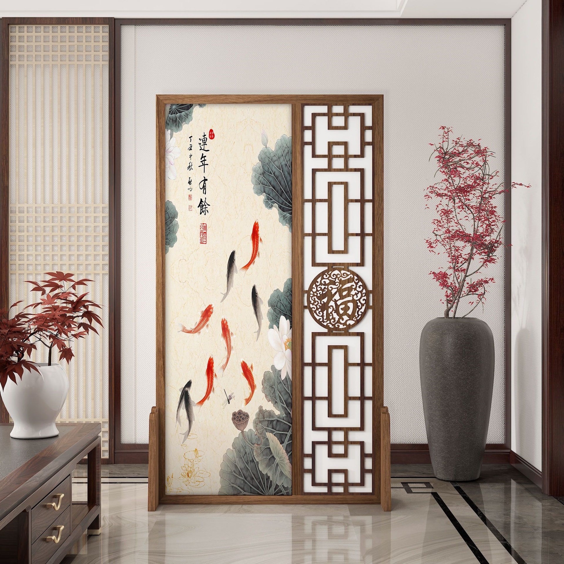 K曹 3 축복 현대 중국 스타일 패브릭 스크린 파티션 벽 모바일 입구 차단 현관 거실 침실 모조 단단한 나무스토어 가기