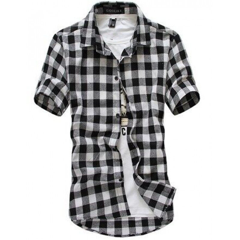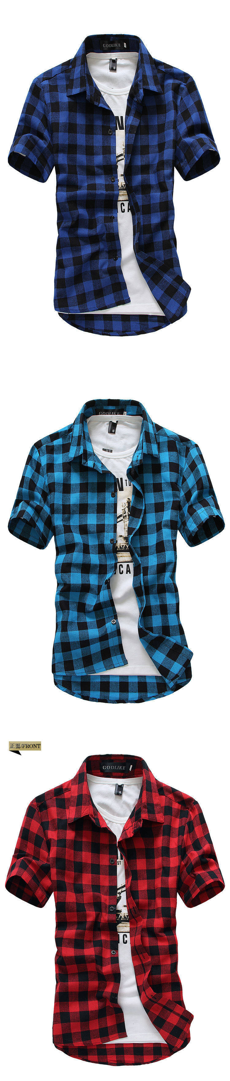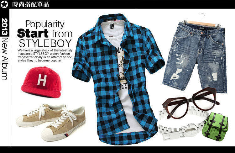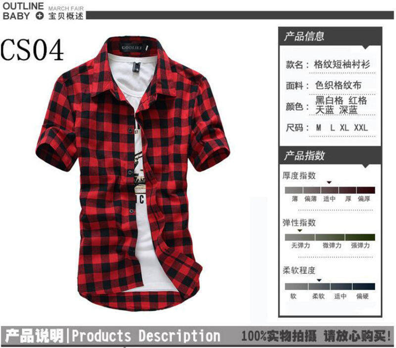 AliExpress 국경 간 유럽과 미국 남성 캐주얼 격자 무늬 셔츠 남성 유행 패션 대형 남성 옷깃 반팔 셔츠